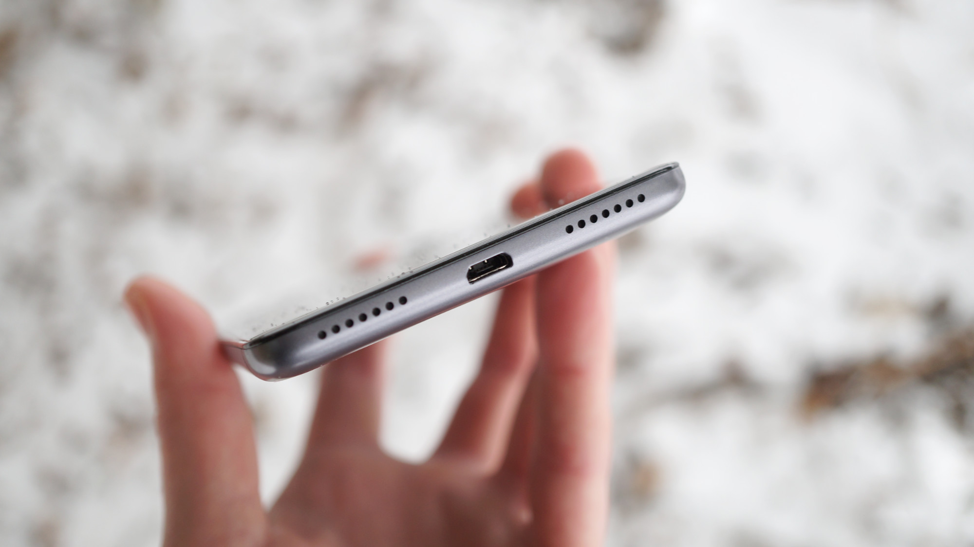 På ovansidan av K6 Note sitter en 3,5 millimeter hörlursport och på undersidan hittar vi en microUSB-port. MicroUSB-porten har inte stöd för att skicka video ut och är begränsad till USB 2. Till vänster om microUSB-porten sitter telefonens huvudmikrofon och till höger hittar vi en högtalare.