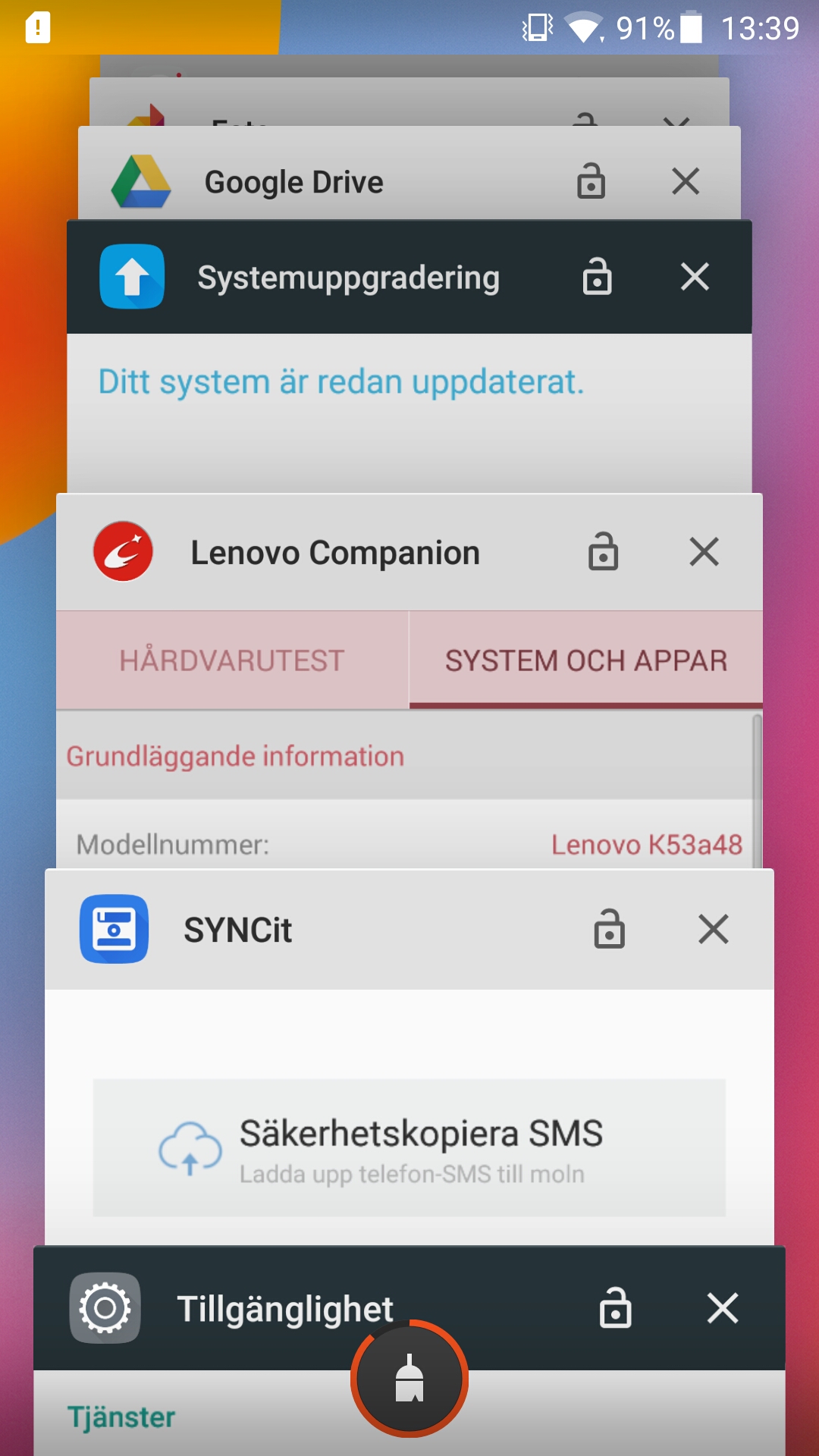Lenovo har installerat ett flertal appar på telefonen. SyncIt är en app som är tänkt att synkronisera och säkerhetskopiera kontakter, SMS och samtalsloggar; Lenovo Companion erbjuder guider, manualer och information om telefonens garantiperiod; och McAfee Mobile Security är en antivirus-app från Intel. Den sistnämnda appen har vi sett installerad på många andra smartphones, bland annat på Sonys telefoner. Appen är dock tyvärr svår att använda, den skickar irriterande notiser, är relativt meningslös och försöker sälja på användare onödiga och dyra prenumerationer. McAfee hör inte hemma på någon Android-smartphone och det är särskilt tråkigt att se appen komma förinstallerad. Det enda plåstret på såret är att McAfee-appen går att avinstallera på Lenovos telefon.