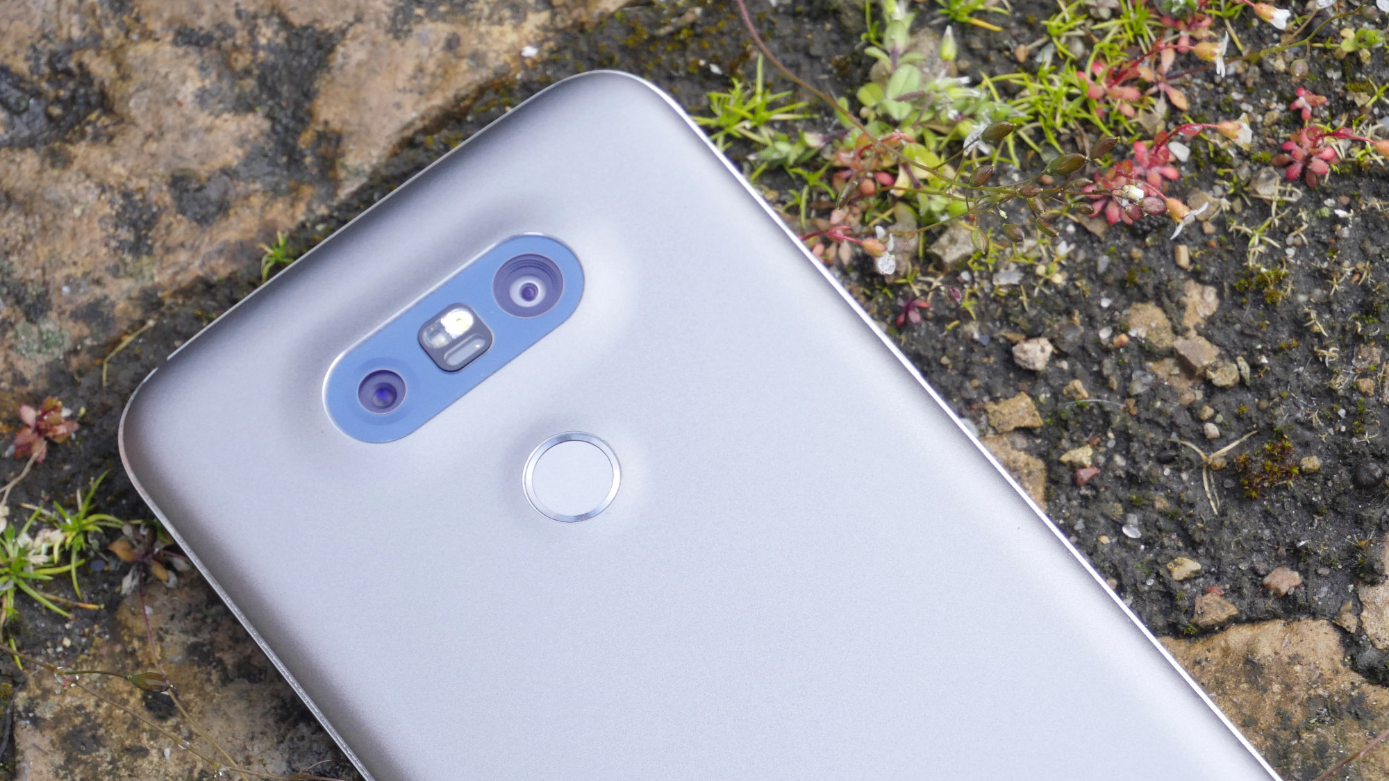 Ovanför fingeravtrycksläsaren sitter telefonens unika kameramodul. Här sitter inte bara en utan två kameror, en LED-lampa och ett laserbaserat autofokussystem. Den vänstra av de två kamerorna är väldigt lik den kamera som användes av LG G4 medan den högra kameran är en vidvinkelkamera som kan vara praktisk för exempelvis landskapsfotografering. Den vanliga kameran har en 16 megapixelsensor och ett bländarvärde på f/1,8 medan vidvinkelkameran har en 8 megapixelsensor och ett bländarvärde på f/2,4. Exakt vad detta innebär återkommer vi till i kameradelen av denna recensionen.