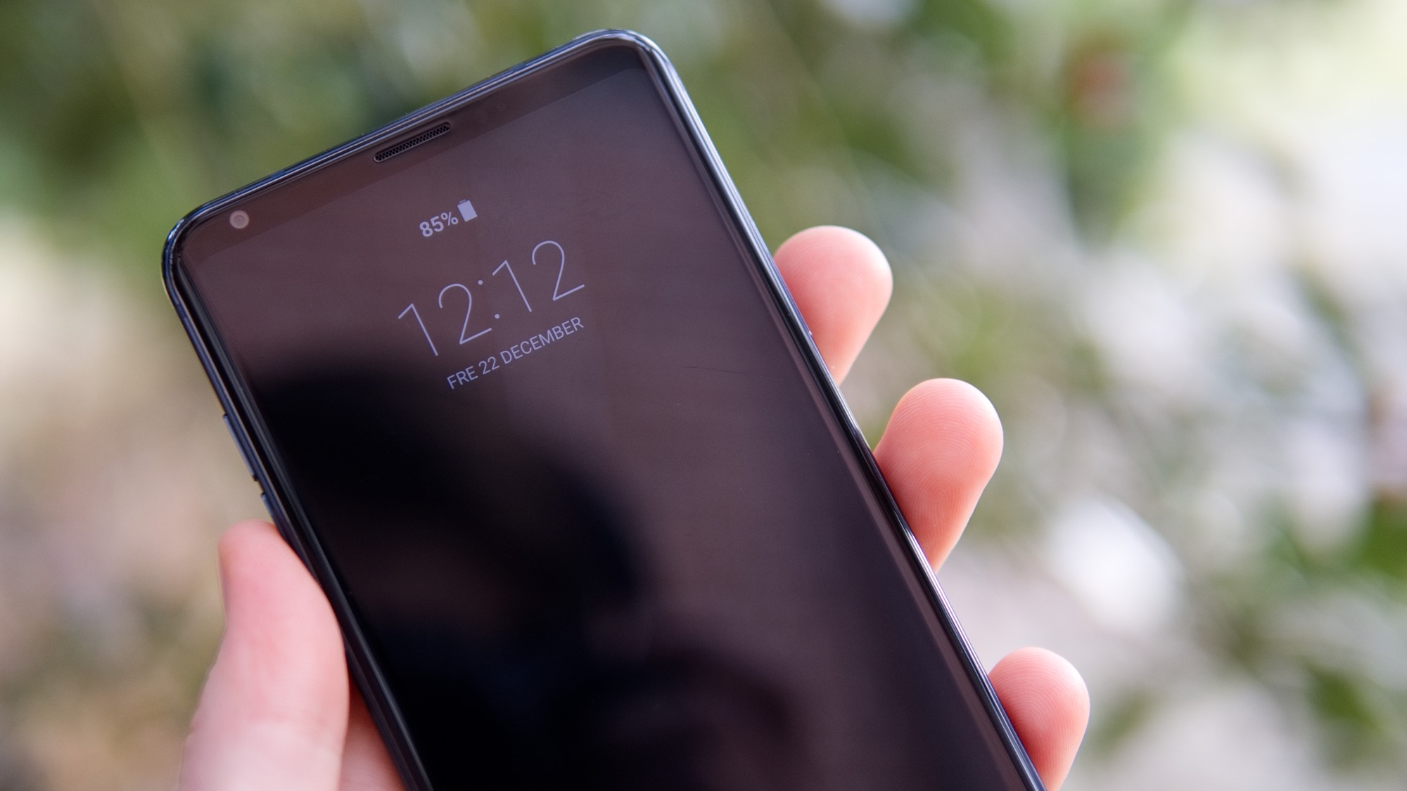 Metallramen är barriären mellan telefonens två glasskivor. På framsidan finns ett reptåligt glas som skyddar en sex tum skärm. Skärmen är ny och ganska unik för LG. Det är företagets första OLED-skärm på många år och har tunnare skärmramar än någon tidigare modell. Stora delar av telefonens framsida täcks av den stora skärmen, utan någon underlig läpp som finns på till exempel Apple iPhone X. LG har lyckats få plats med en frontmonterad kamera och en hörlur ovanför skärmen, utan att kompromissa med skärmens storlek eller ram.