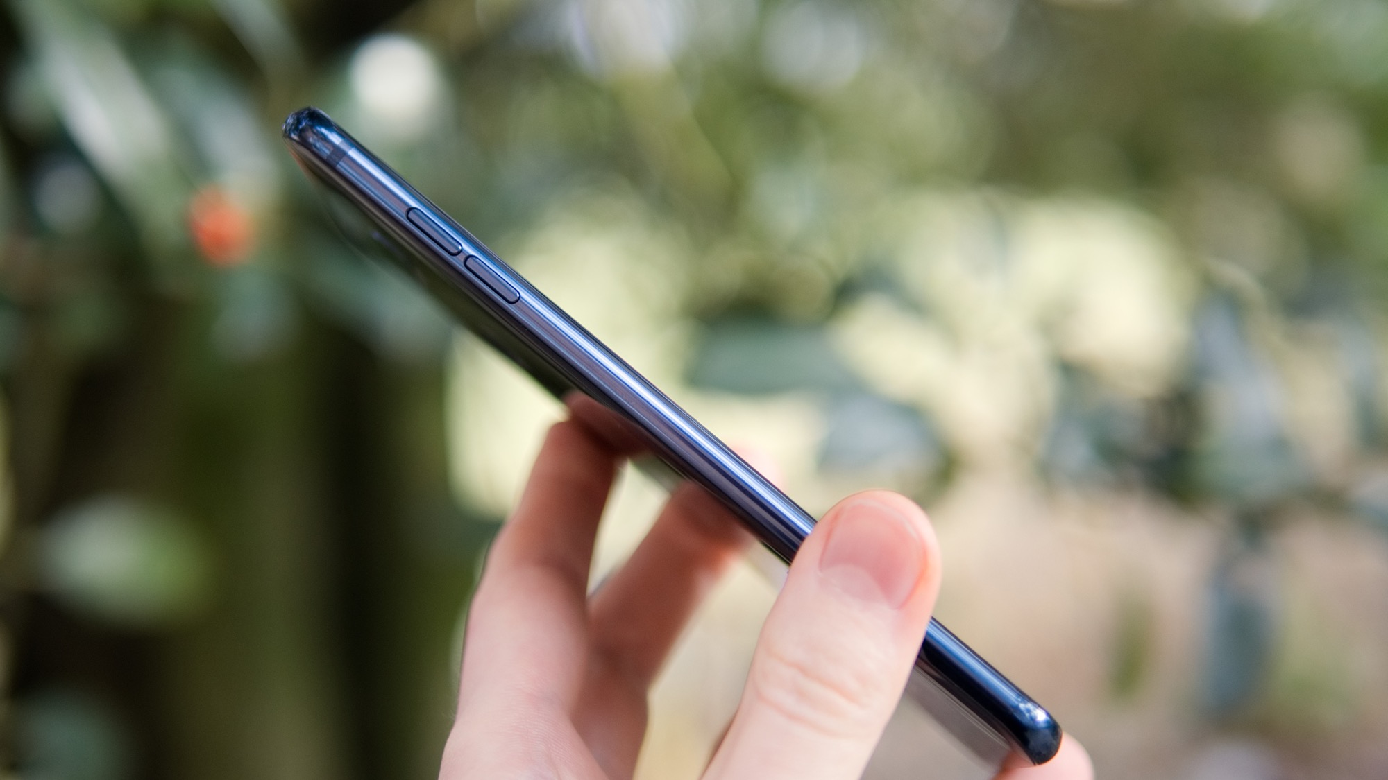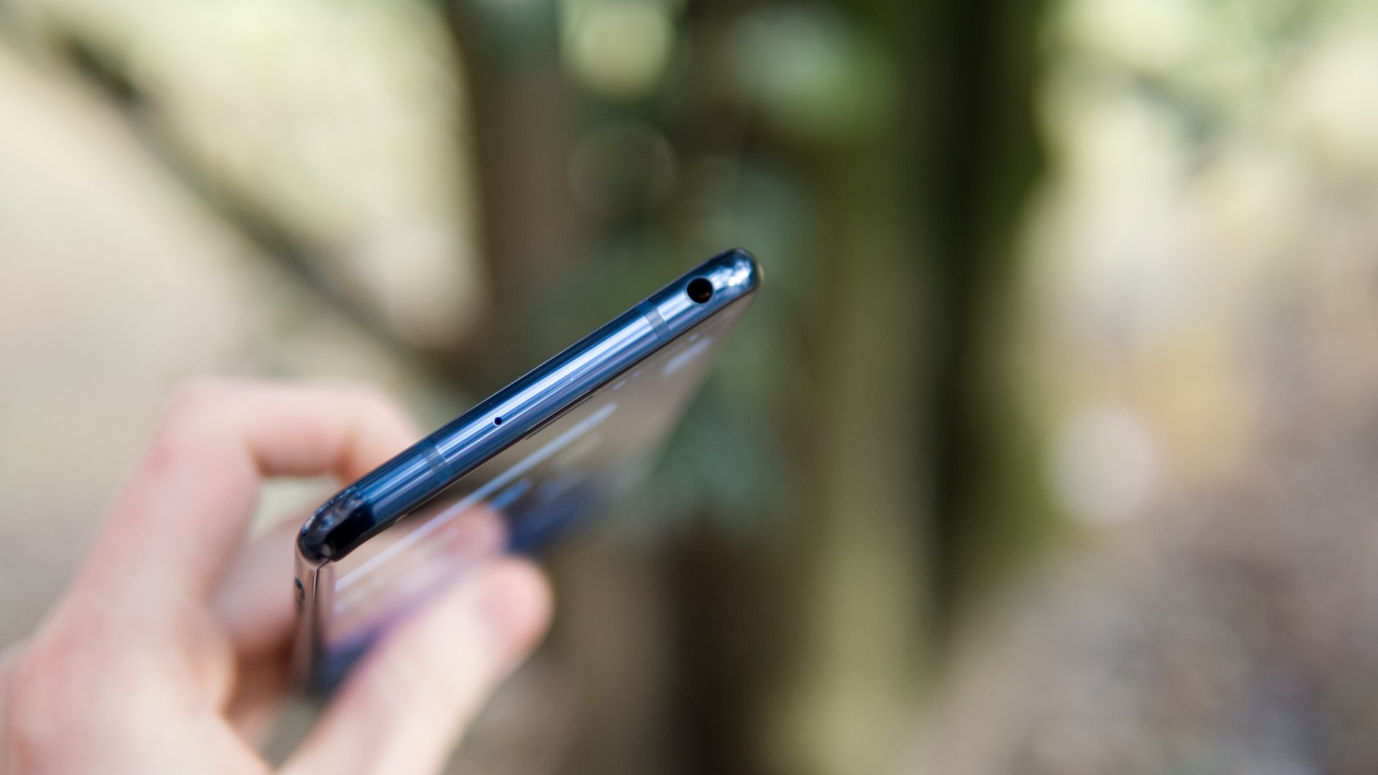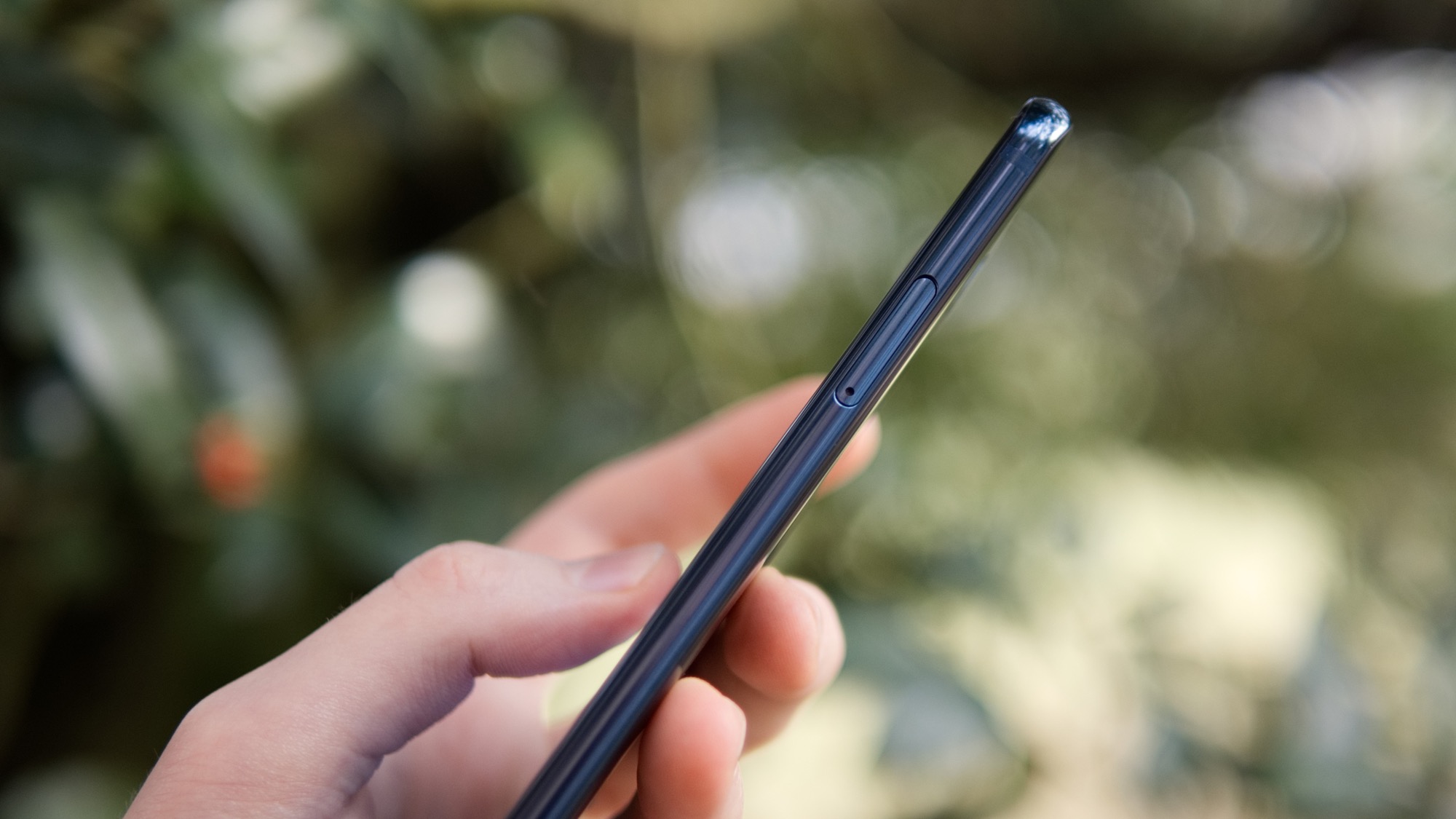 Glaset möts av metall som sträcker sig som ett band runt telefonen. På höger sida finns en kortläsare med plats för ett nanoSIM-kort och ett microSD-kort. Här finns alltså ingen plats för dubbla SIM-kort. På ovansidan finns en hörlursport och en sekundär mikrofon, på vänster sida finns två volymknappar som ger helt okej fysisk återkoppling. Knapparna på vårt exemplar var dock lite ostabila och knakade till och med lite.