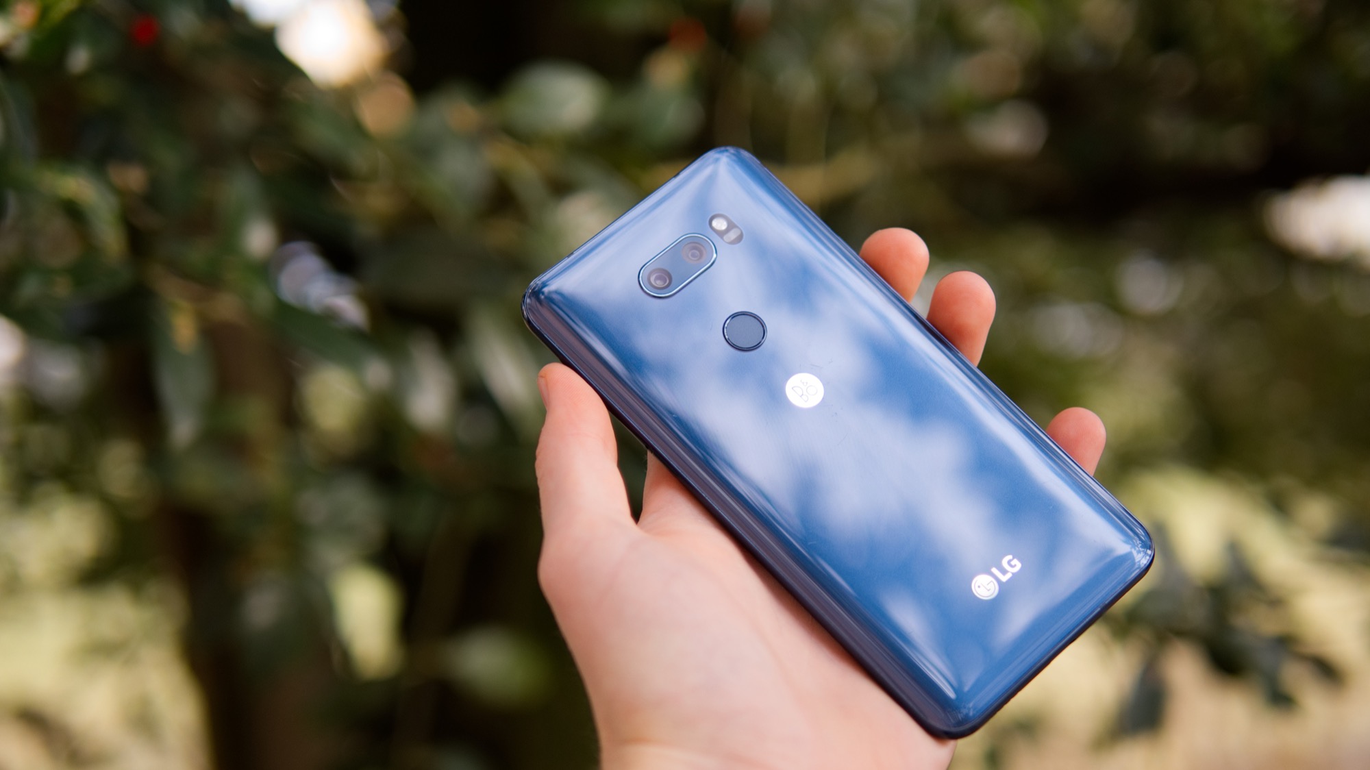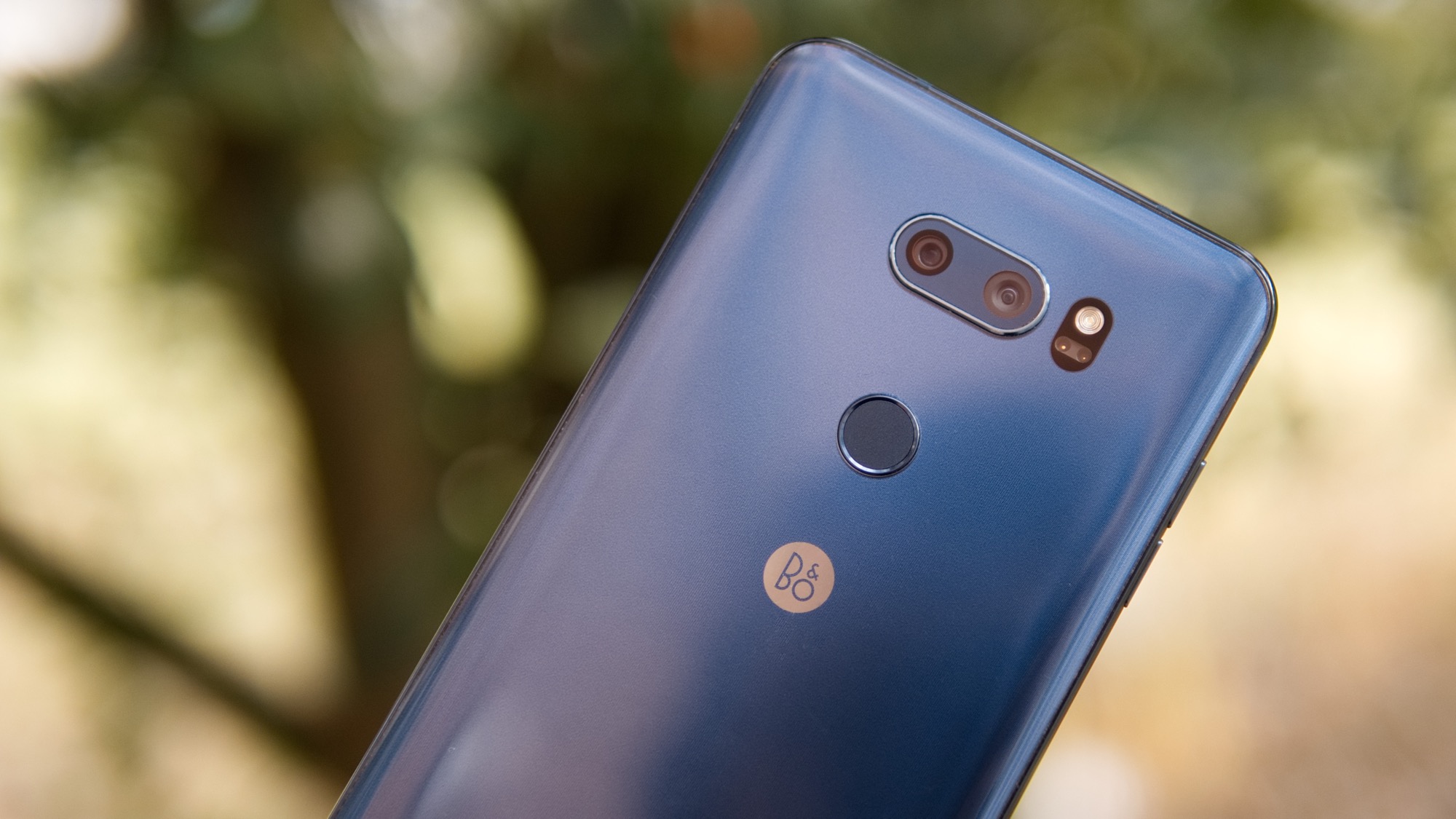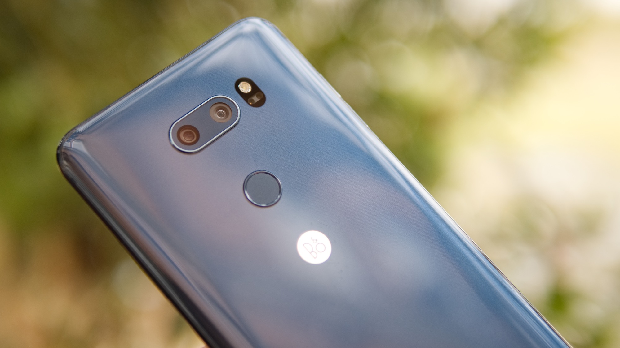 På mitten av baksidan sitter LG:s varumärke tillsammans med Bang & Olufsens varumärke. Ljudföretagets märke tar nästan förstaplats framför LG:s. Ovanför märkena sitter i alla fall LG:s speciella fingeravtrycksläsare. Till en början kan den kanske se ut som en vanlig läsare, som finns på till exempel Huawei Mate 10 Pro, men likt många tidigare LG-telefoner har också V30 en läsare som dessutom fungerar som en på/av-knapp. Knappen fungerar bra och erbjuder tillräckligt bra fysisk återkoppling. Vi kan dock inte säga att vi föredrar den framför mer traditionella knappar som oftast sitter på sidan av telefoner. LG löser i alla fall problemet med att knappen är svår att komma åt när den ligger på ett bord, genom att låta användare väcka telefonen med två knack på skärmen.