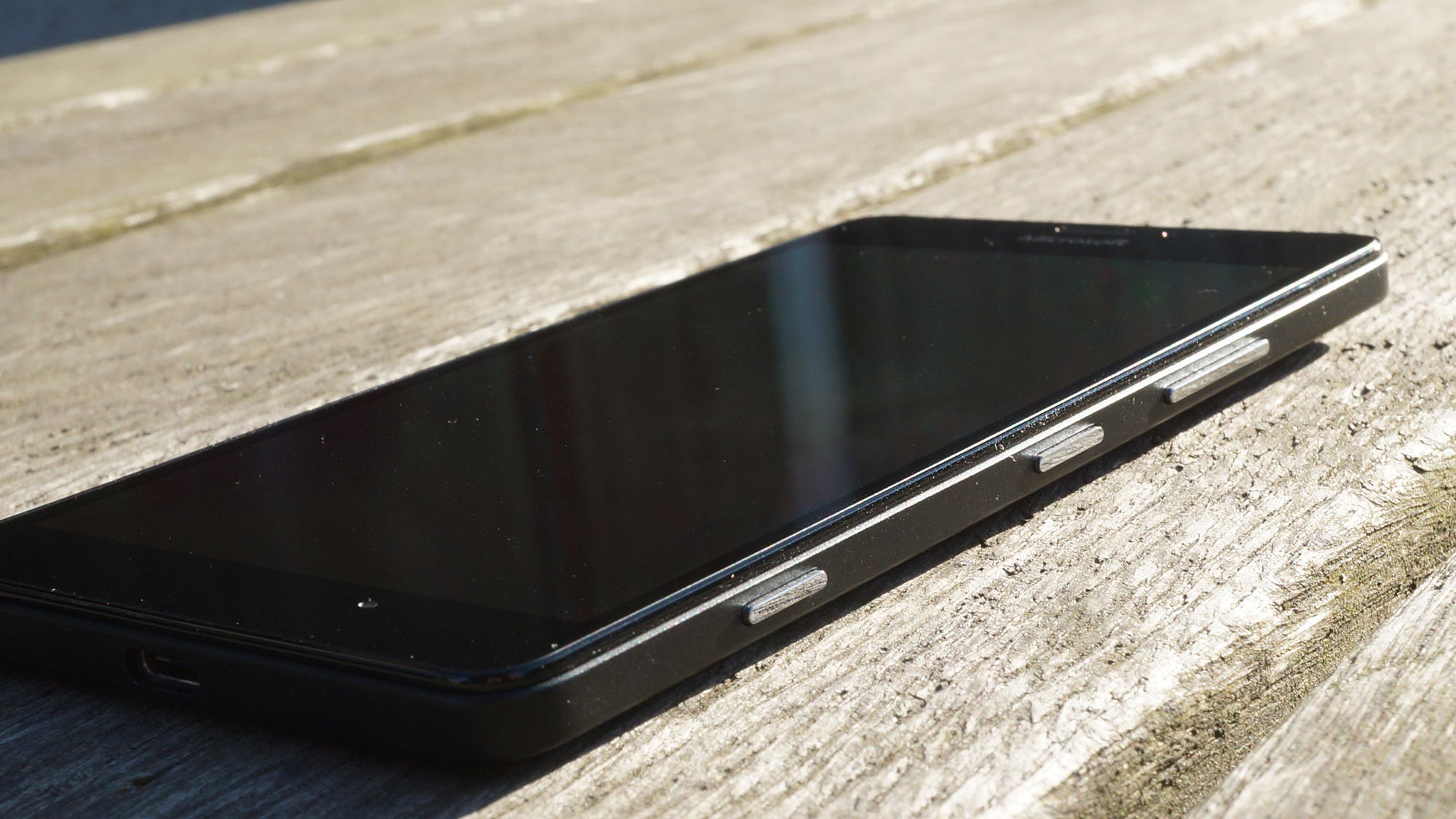 På telefonens högra sida finns tre silverfärgade knappar: en på/av-knapp, en kombinerad volymknapp för volym upp och ner samt en kameraknapp med mellanläge för fokus. Knapparna fungerar bra och är logiskt placerade. Kameraknappen kan vara särskilt värdefull för dig som gillar att fotografera.