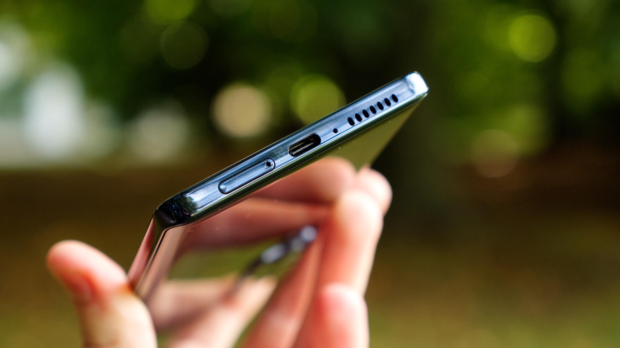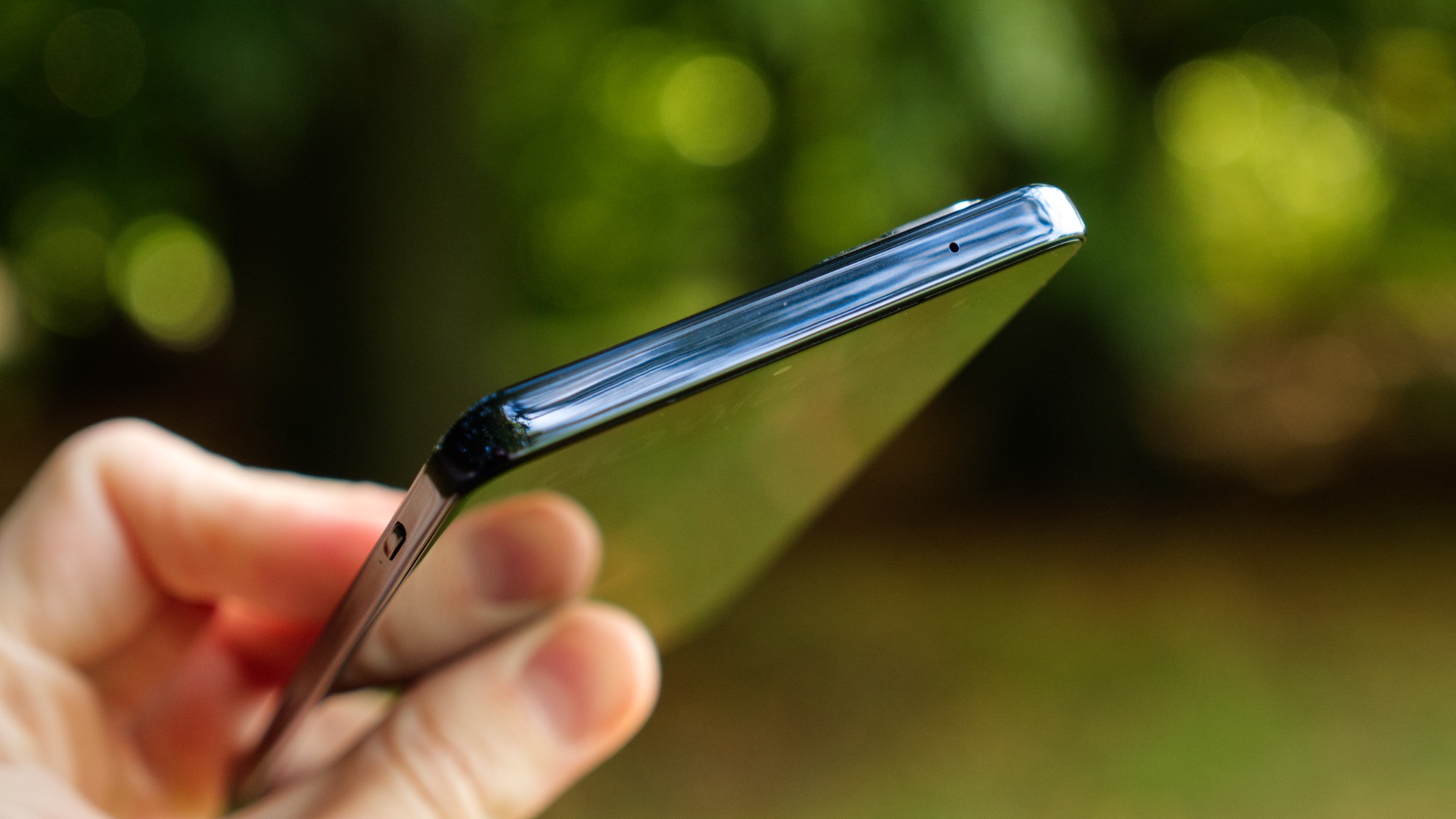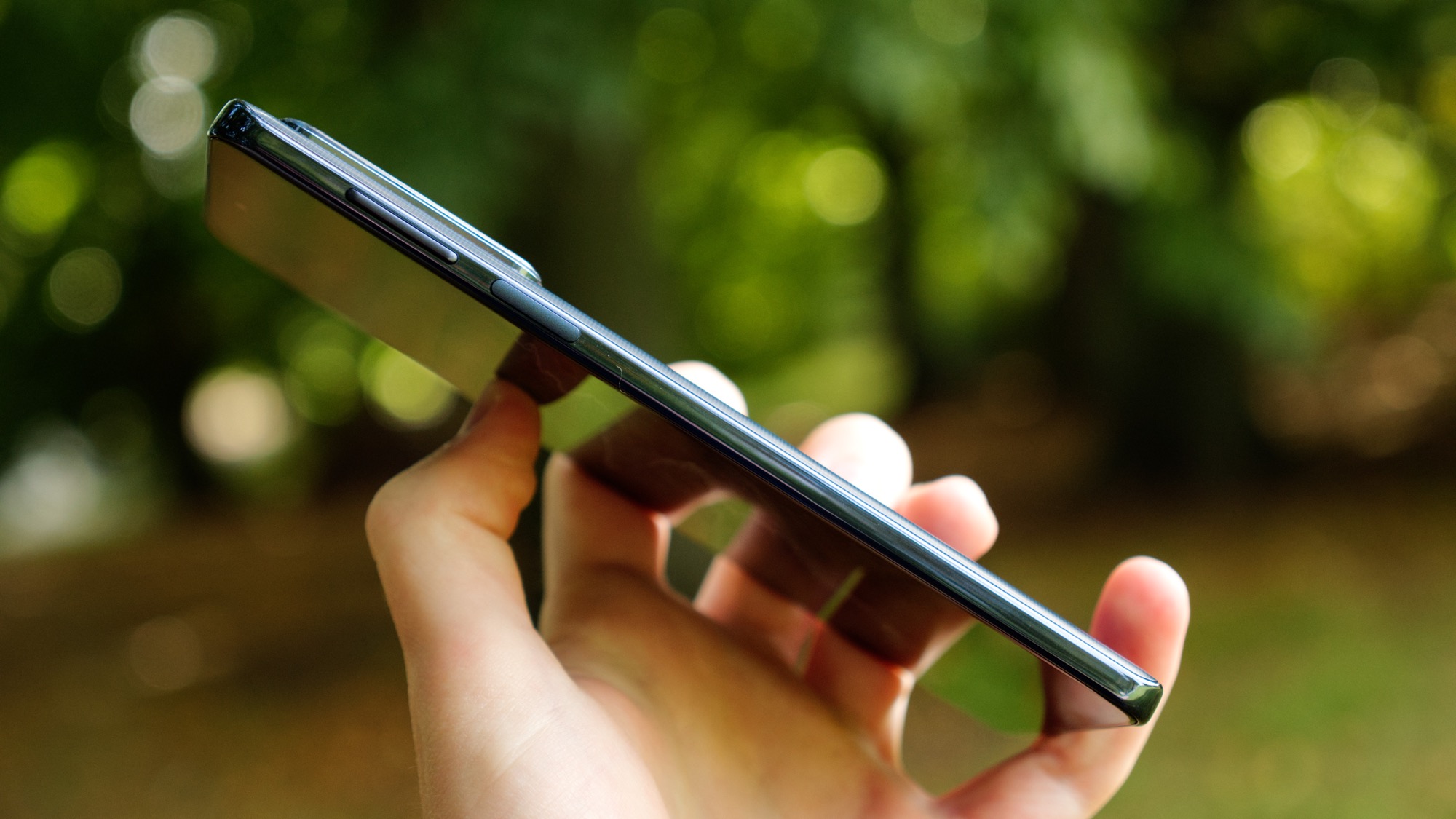 Längs telefonens högra sida sitter en på/av-knapp som också fungerar som fingeravtrycksläsare. Den är snabb och pålitlig, om vi registrerar fingret noggrant. Ovanför den finns volymknappar som kan vara lite svåra att nå men som åtminstone ger helt okej fysisk återkoppling. På ovansidan finns en sekundär mikrofon och på vänster sida finns en knapp för Google Assistent. Knappen är placerad för att vara svår att trycka av misstag. Knappens rundade design gör den ännu mer idiotsäker. Det är bra eftersom knappen inte går att inaktivera eller programmera.