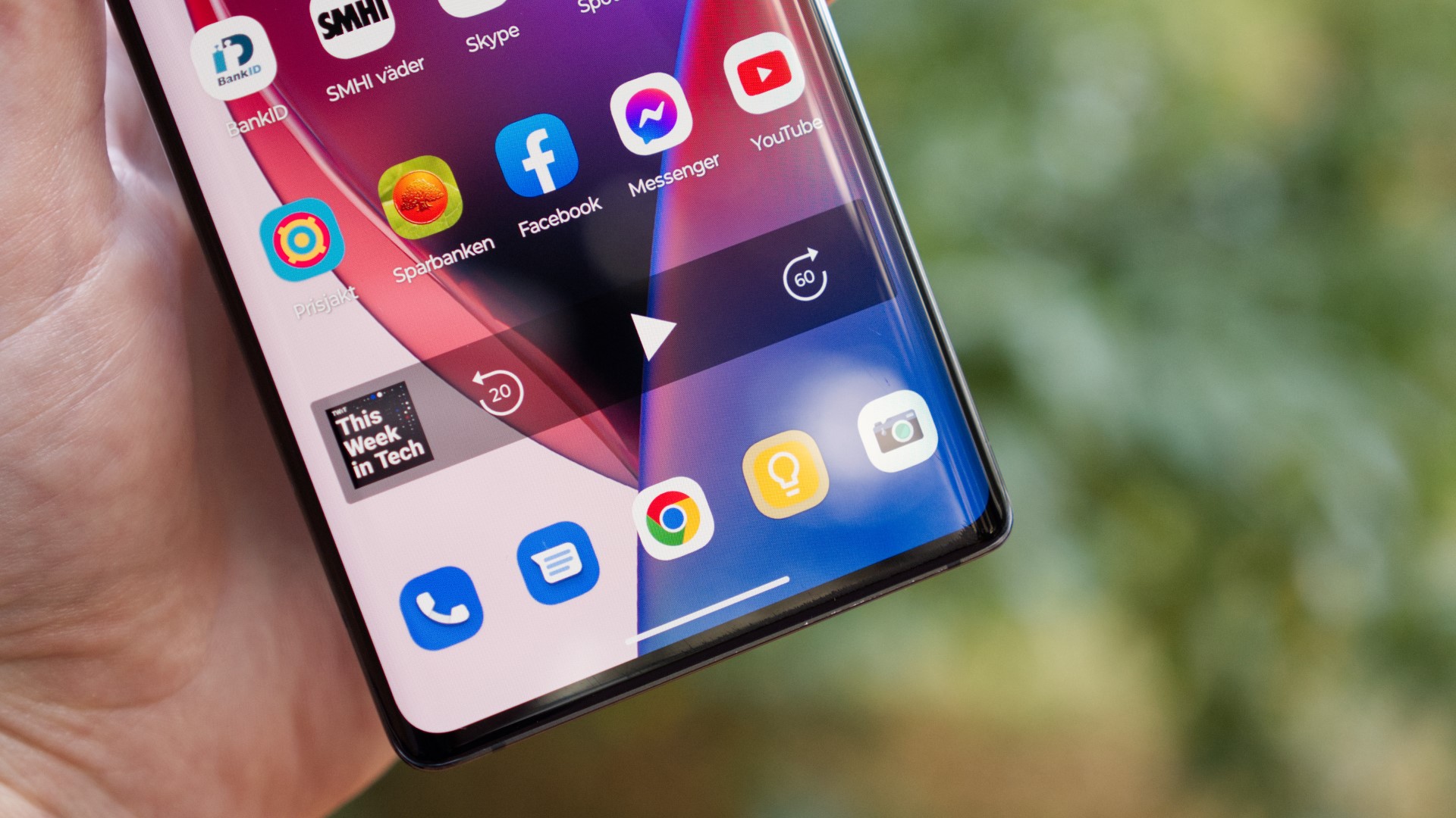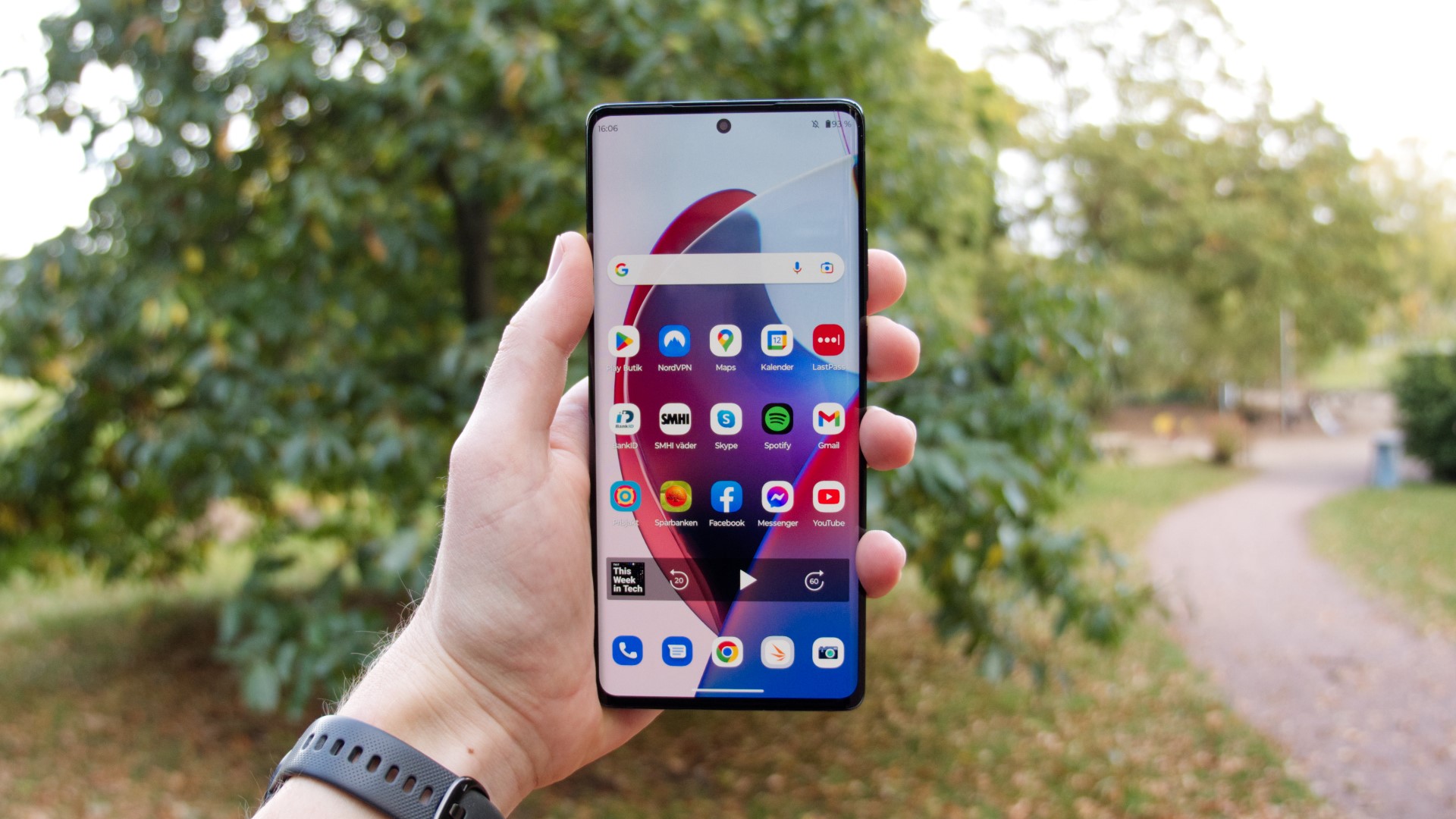 Motorola Edge 30 Ultra har en 6,67 tum AMOLED-skärm med 1 080p-upplösning och 144 Hz uppdateringsfrekvens. Det lägger den i klass med flera konkurrenter i segmentet. Den sticker däremot ut med ovanligt hög ljusstyrka. Den når 1 127 nits i vårt test, vilket är i klass med marknadens bästa. När vi testar med HDR-innehåll når den 1 300 nits. Även det är riktigt imponerande och det betyder att vi har en skärm som är lätt att se och använda i alla miljöer. Med det sagt är skärmen dessvärre ganska dåligt kalibrerad. Den har en grön ton och är inte särskilt färgexakt. För detta priset hade vi förväntat oss en mer exakt skärm, särskilt med tanke på att Motorola försöker få Edge 30 Ultra att framstå som en kameramobil.
