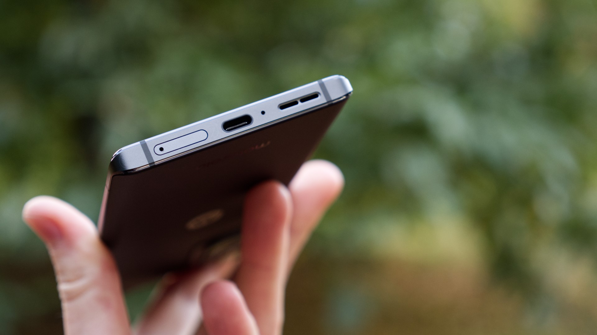 Längs undersidan av mobilen finns en USB C-port, en högtalare, en mikrofon och en kortläsare med plats för dubbla nanoSIM-kort men inte för microSD-kort. Det finns ingen hörlursport och ingen adapter i lådan.