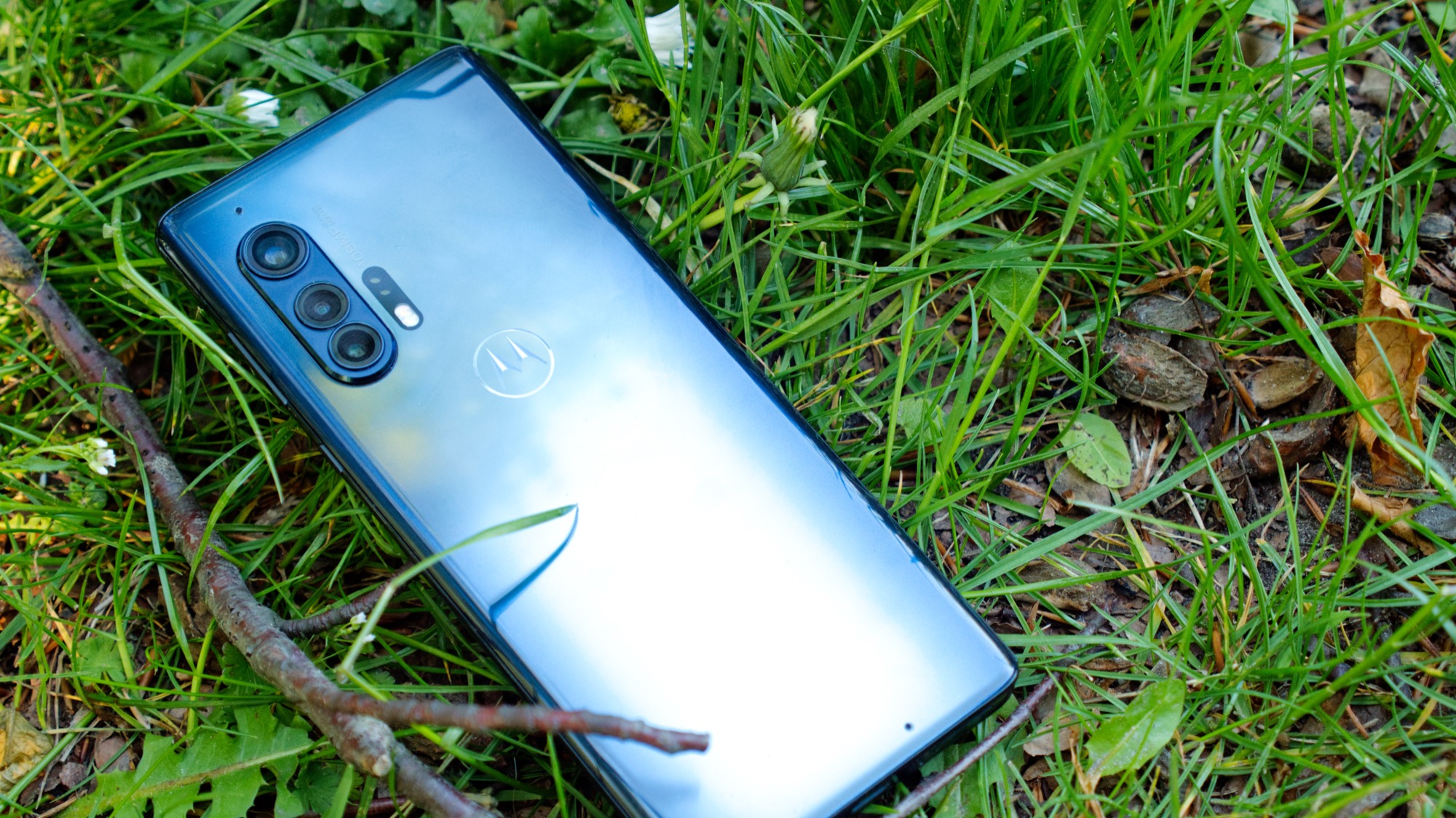 Faktumet att skärmen är så kraftigt böjd som den är gör att den metallram som vi är vana vid att ha längs sidorna av smartphones är väldigt tunn. Den är dessutom till synes gjord av plast. Som vi förstår är det ett yttre lager av någon typ av lack eller färg som gör att den känns lite plastig men att hela ramen är gjord av aluminium. Metallen gör Motorola Edge+ stadig som ett berg, även om det yttre inte ger den värmeledande känsla som många mobiler ger.
