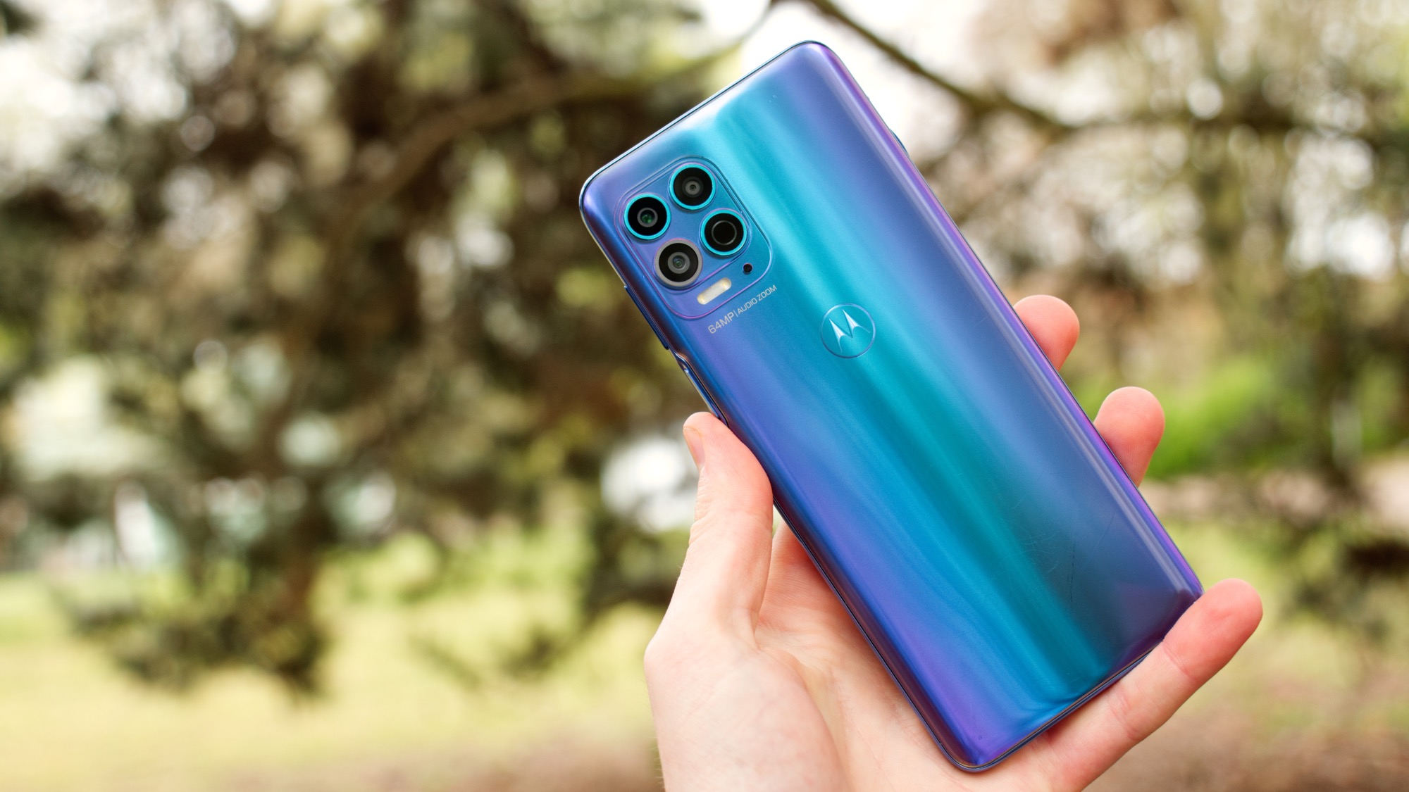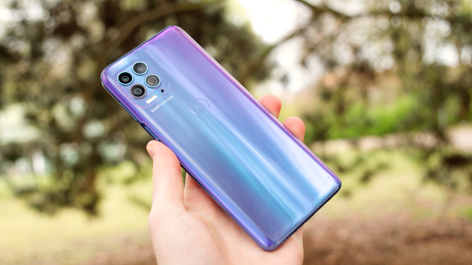 Läs mer om hårdvaranOm du vill ha en smartphone som sticker ut ur mängden med en färgglad baksida, är Motorola Moto G100 möjligen ditt bästa alternativ. Den blåa versionen av mobilen har en baksida som skimrar i ljusblått, blått och lila. Baksidan ser ut som en scen från 2001: A Space Odyssey. För dig som funderar på att köpa en Moto G100, kan vi meddela att det också säljs en vit modell som är betydligt mer stilren.