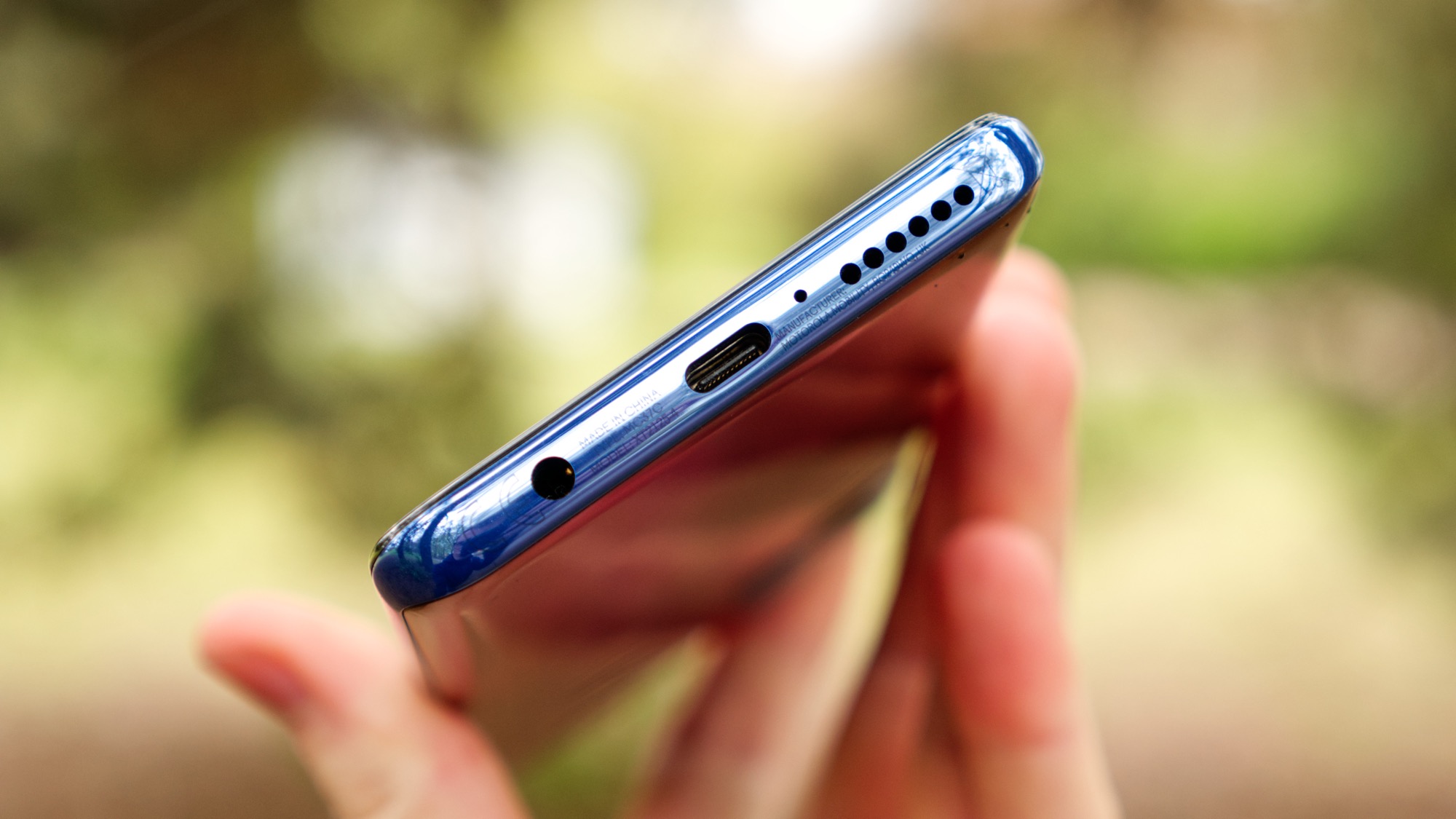 Längs undersidan har Motorola fått plats med en USB C-port, en hörlursport, en mikrofon och en högtalare. Hörlursporten är en ovanlig funktion som få konkurrenter kan erbjuda i klassen. Hörlursporten kan vara en seriöst bra anledning att skaffa Moto G100 framför konkurrenterna. USB C-porten är för övrigt också ovanlig. Den har stöd för USB 3 och videoutmatning, vilket är sällsynt i klassen.