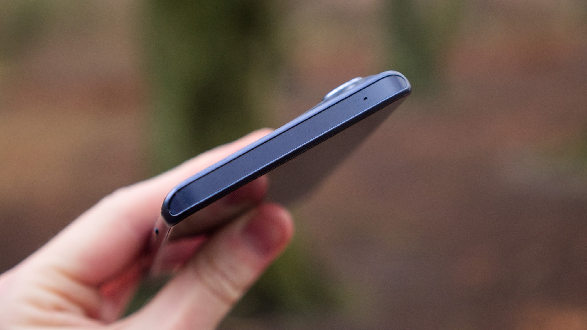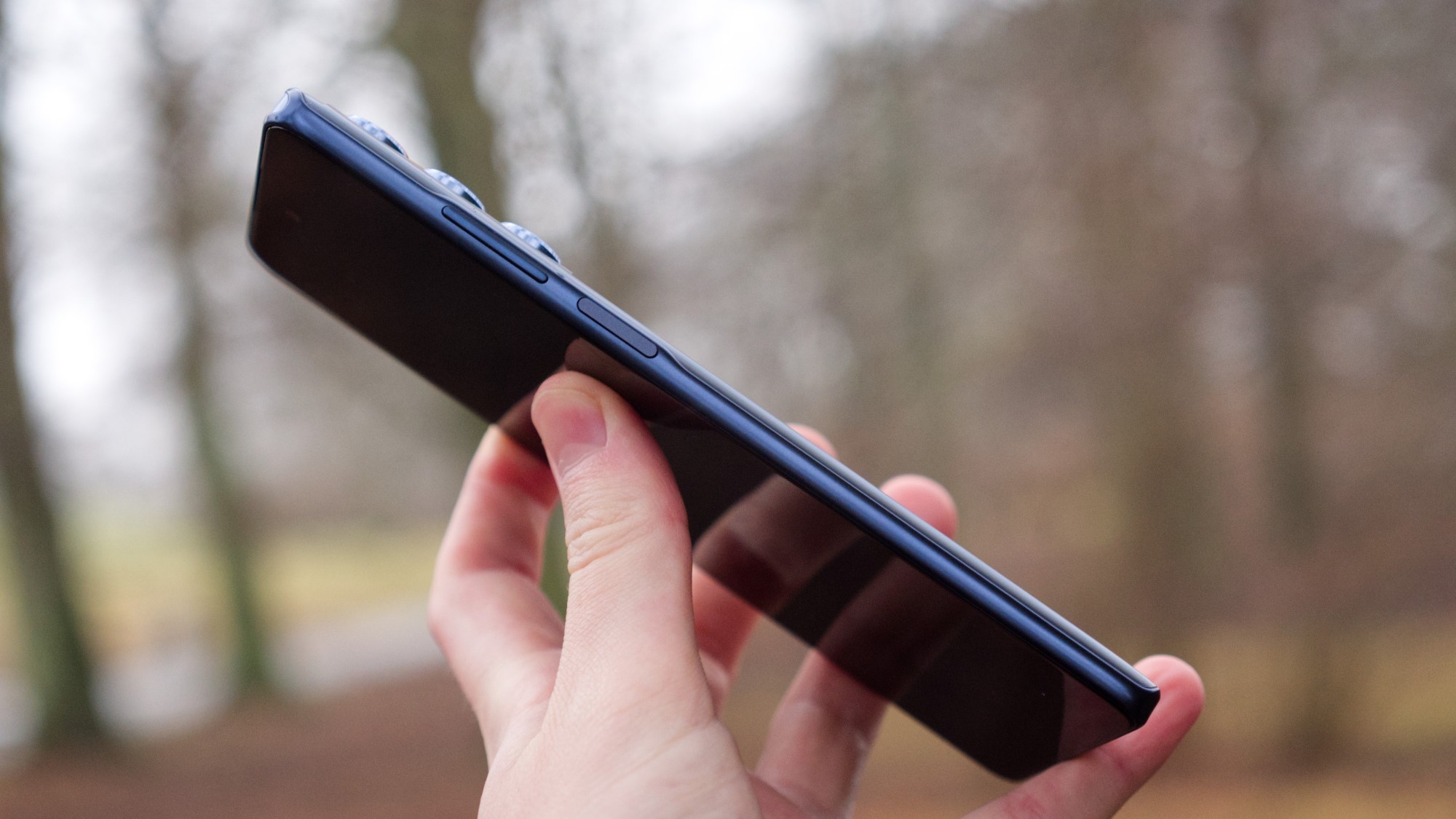 Längs telefonens högra sida finns en på/av-knapp och fingeravtrycksläsare. Så länge vi är noggranna med att registrera hela fingret vid konfiguration, fungerar läsaren snabbt och pålitligt. Läsarens position är praktisk, även om den gärna hade fått sitta lite längre ner för att vara enkel att nå för personer med små händer. Volymknapparna sitter strax ovanför. De känns inte så bra då de är lite svampiga och dåligt monterade. De är i alla fall lätta att känna sig fram till.