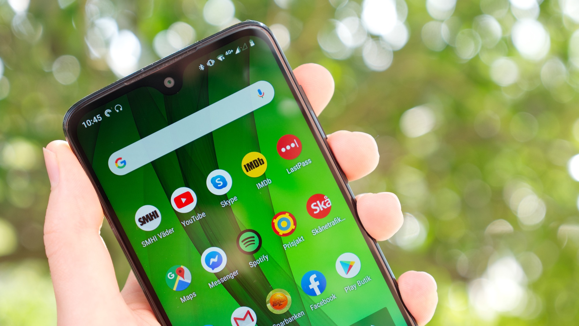 Skärmen har en flärp för att ge utrymme för den främre kameran. Ovanför den finns en hörlur och ett par sensorer. Under skärmen hittar vi Motorolas logga – ett allt mer ovanligt designval. Bortom det finns inte så mycket mer att säga om Moto G7:s design. Motorola har valt ett enkelt och snällt designspråk som ger oss en bekväm mobil som passar alldeles utmärkt till företagets avskalade och enkla mjukvara.