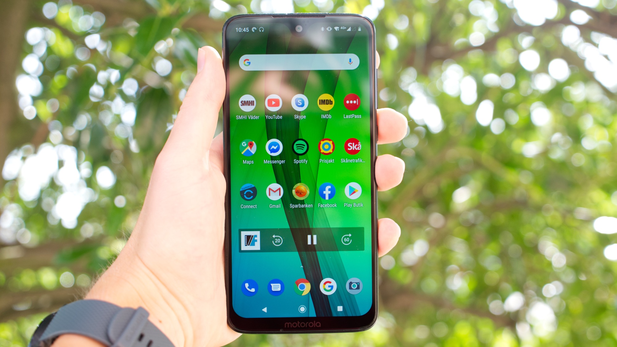 Läs mer om kameranMotorola Moto G7 har en 12 megapixelkamera med ett bländarvärde på f/1,8. Den assisteras av en sekundär kamera som tyvärr bara fungerar i porträttläge. Den har alltså ingen zoom eller något annat perspektiv än huvudkameran. Huvudkameran är en helt okej kamera i ljusa miljöer. Den ligger snäppet bakom konkurrenter så som Xiaomi Redmi Note 7 när det gäller både detaljrikedom och dynamiskt omfång. Den behåller dock ganska bra färgåtergivning och kontrast i varierande miljöer.