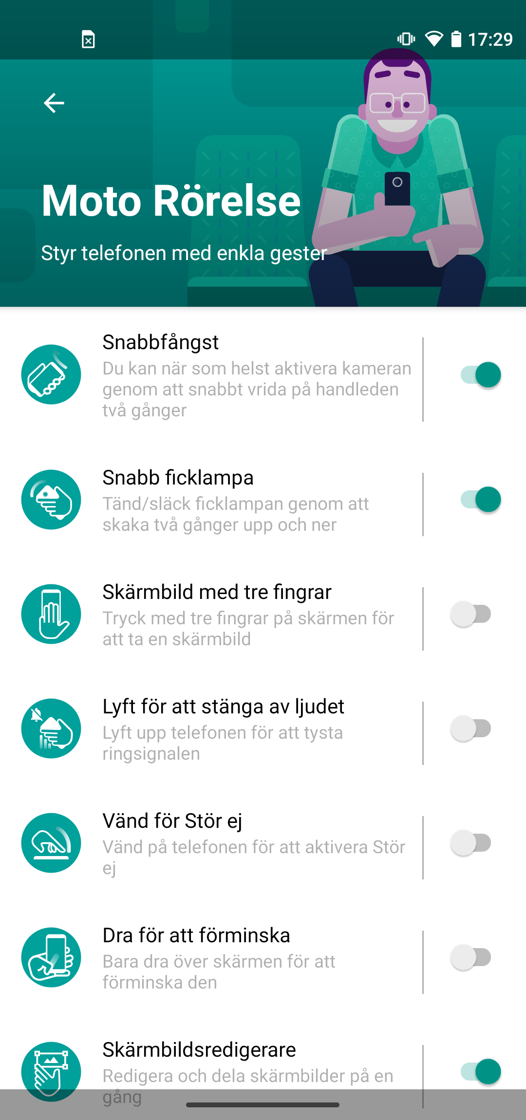 Läs mer om mjukvaranMotorola Moto G8 Power baseras på Android 10 med Motorolas överliggande anpassningar. Anpassningarna är i vanlig ordning ganska små. Det handlar främst om ett fåtal extrafunktioner, som sällan påverkar systemfunktioner Det gör att systeminställningar, snabbgenvägar, hemskärmen, appbytaren och mycket mer beter sig precis som vanligt. Det betyder dessutom att Moto G8 Power kommer med Googles nya gestbaserade navigationssystem. Det går fortfarande att byta tillbaka till de tre knapparna för navigationen men Motorolas egen lösning för gestnavigering än numera borta.