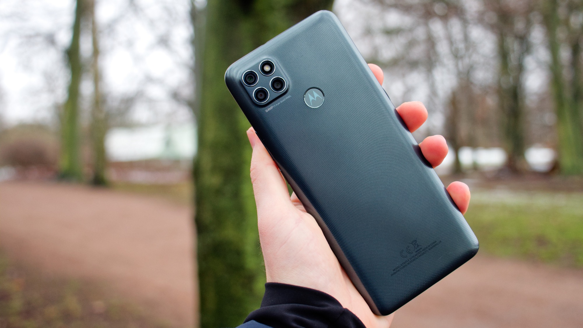 Kameran på baksidan av Moto G9 Power sticker ut en knapp millimeter. Med det inkluderade plastskalet är den väl skyddad. Kameramodulen inkluderar tre kameror och en LED-lampa i en design som har blivit populär i alla segment av marknaden. Kamerorna omringas av glänsande silverfärgade ringar. Motorola har definitivt försökt få Moto G9 Power att se lite exklusiv ut. Det tycker vi inte riktigt att de har lyckats med. Plastbakstycket både ser och känns ganska billigt. Konstruktionen knakar till och med ibland, vilket är ganska ovanligt även bland billiga mobiler.