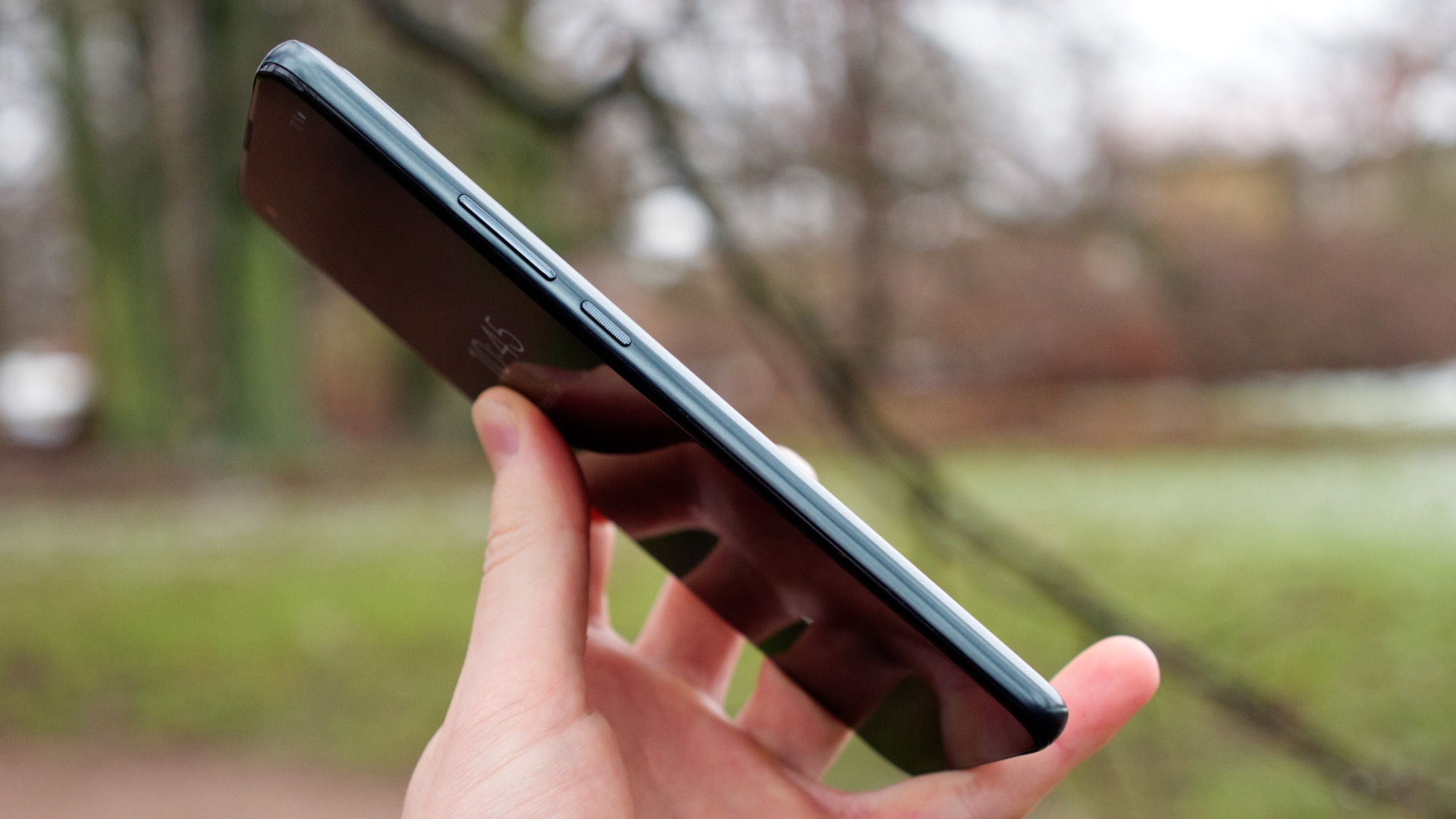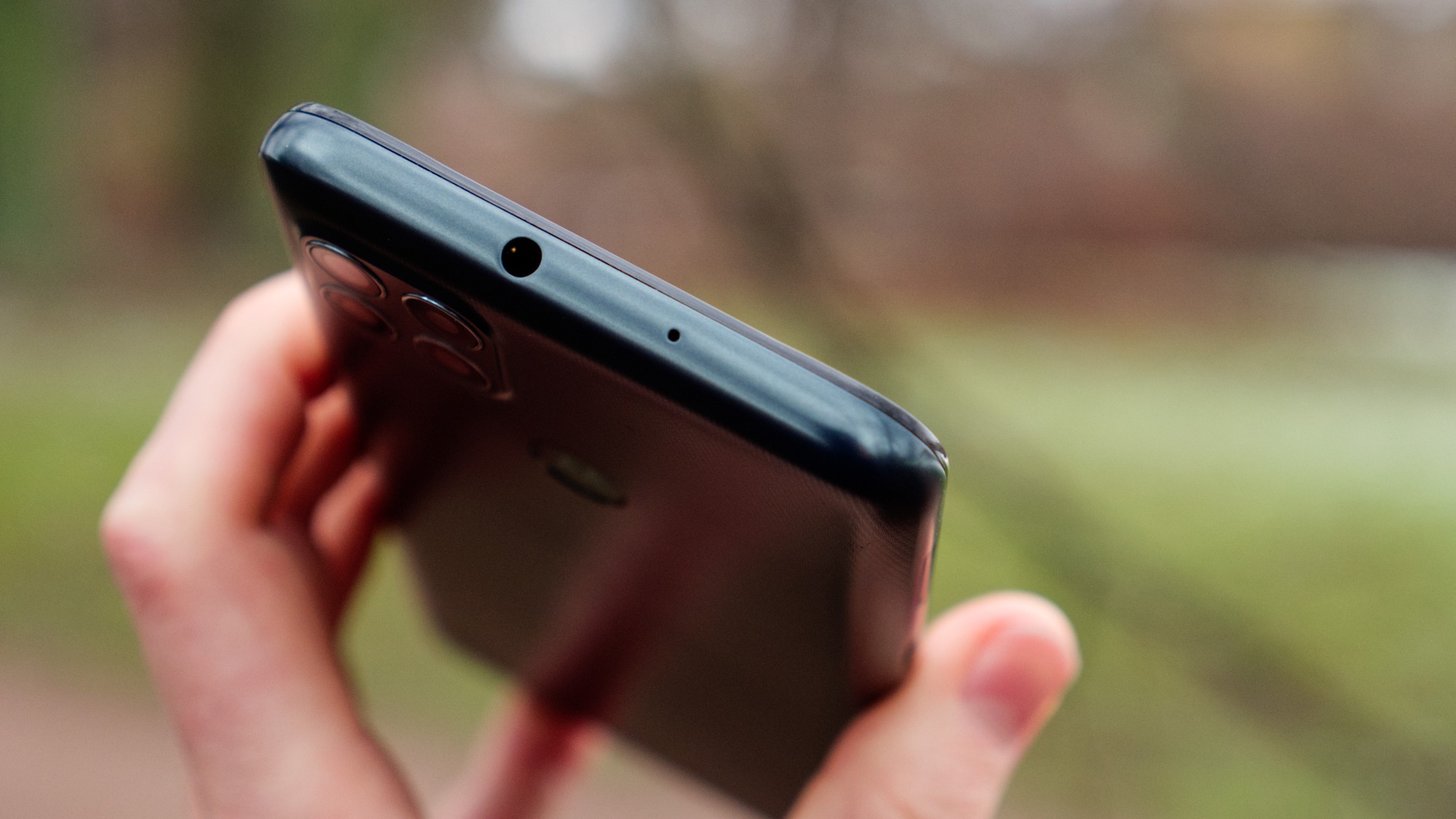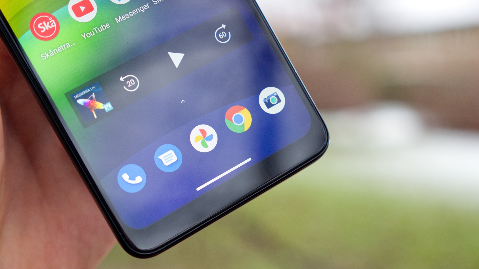 Längs vänster sida finns en på/av-knapp och två volymknappar. De är lätta att använda och åtminstone praktiskt placerade för högerhänta. Längs ovansidan finns en hörlursport och en sekundär mikrofon. Längs vänster sida finns en kortläsare med plats för dubbla nanoSIM-kort eller ett nanoSIM- och ett microSD-kort. Här finns också en dedikerad knapp för Google Assistent. Knappen är rundad så att den bara går att trycka in ordentligt om vi trycker på mitten av den. Det är en smart design. Det gör det nämligen svårt att trycka in knappen av misstag, samtidigt som den är tillräckligt enkel att trycka in när vi vill använda den.