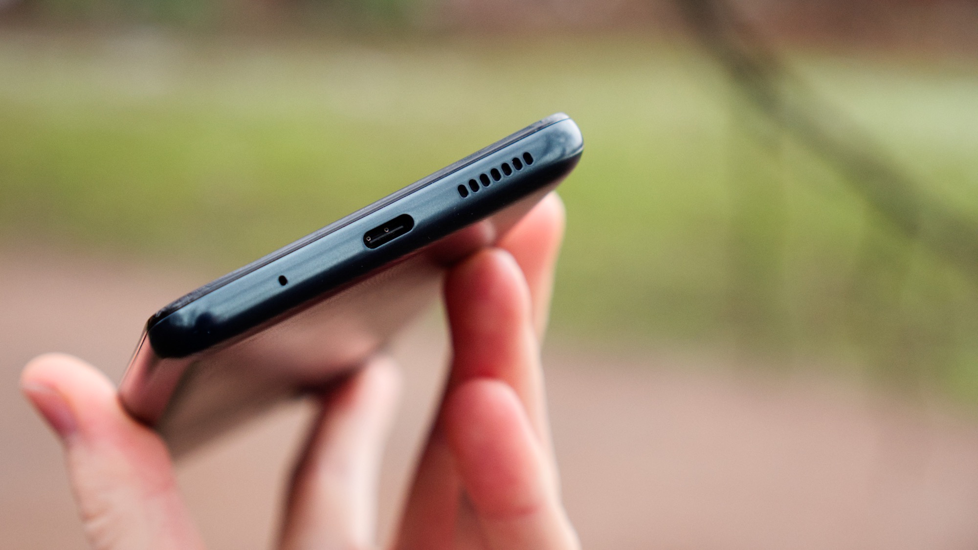 Undersidan har en mikrofon, högtalare och USB C-port. Vi hade gärna sett USB-porten och hörlursporten på samma sida men är glada att de båda är tillgängliga.
