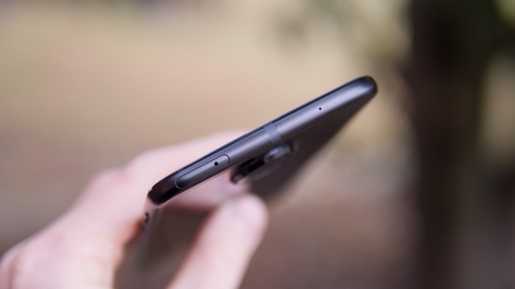 På ovansidan finns en SIM-kortshållare. Den plockas ut med ett inkluderat SIM-kortsverktyg och har plats för två nanoSIM-kort eller ett microSD-kort och ett nanoSIM-kort. Det betyder att det bara går att använda två kort i taget. Vissa andra Moto Z-telefoner har stöd för tre kort men Moto Z2 Force är alltså begränsad till två.