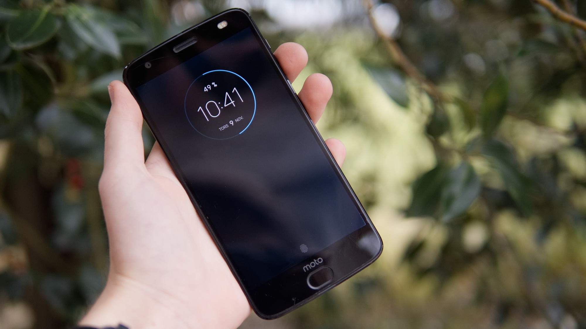 Framsidan av Moto Z2 Force har samma grundläggande utseende som tidigare Moto Z-telefoner. Här finns en skärm med ett klassiskt 16:9-format, väl tilltagna ramar, en fingeravtrycksläsare, en hörlur och en videosamtalskamera. Årets enda nyhet på framsidan är två LED-lampor. Nu är det alltså inte bara kameran på baksidan som kan få hjälp i mörka miljöer – även den främre kameran kan assisteras när ljuset tryter.