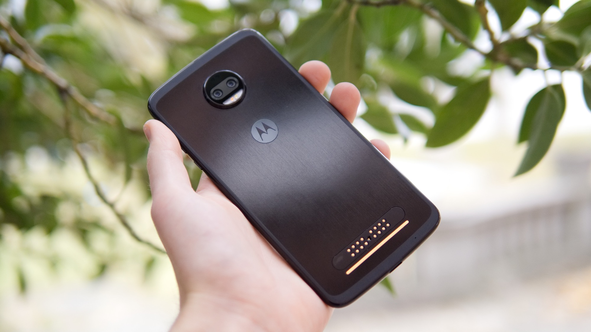Moto Z2 Force är Motorolas första flaggskepp som har en kameramodul med dubbla kameror. Det är två kameror som fångar bilder med samma perspektiv. Medan iPhone 8 Plus och Samsung Galaxy Note 8 har inzoomade sekundära kameror kan alltså Moto Z2 Force ta porträttbilder med utsuddad bakrund, även med ett traditionellt vidvinkligt perspektiv.