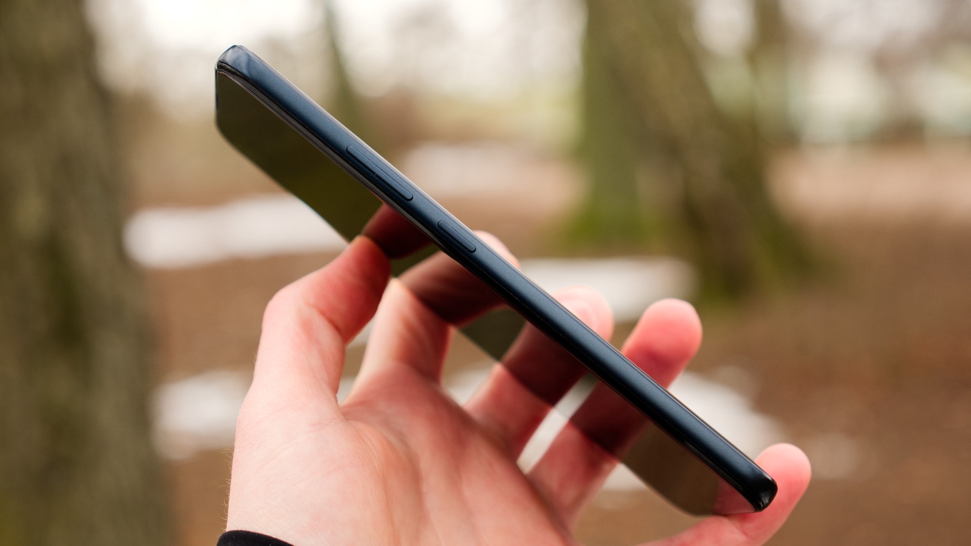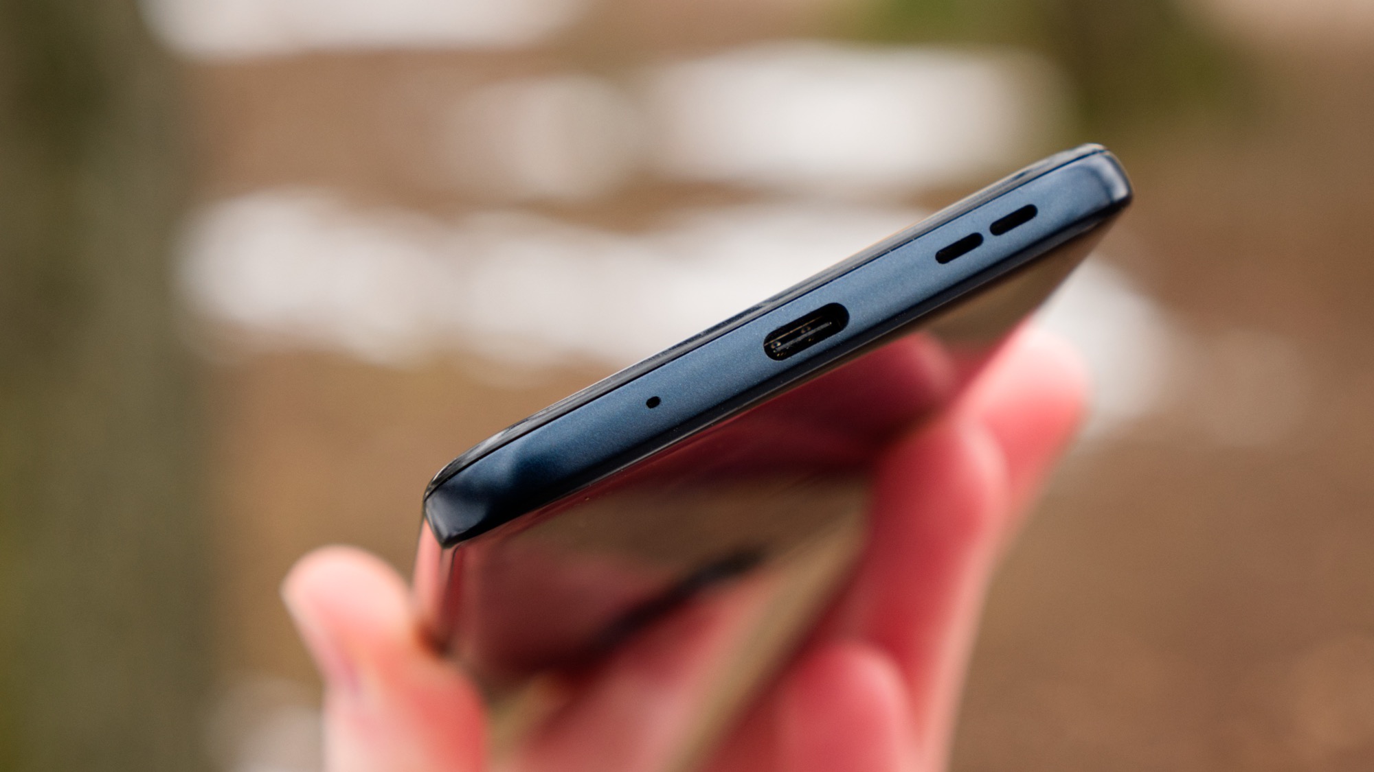 Längs höger sida finns en på/av-knapp och volymknappar. Ovansidan bjuder på en hörlursport och en sekundär mikrofon. Vänster sida har en kortläsare med plats för ett microSD-kort och dubbla nanoSIM-kort. Här finns dessutom en dedikerad Google Assistent-knapp. Den gör det enkelt att nå Googles röstassistent. Kanske lite för lätt. Eftersom den är placerad mitt emot på/av-knappen, är den enkel att trycka av misstag. Vi föredrar Motorolas senaste design, som inkluderar en rundad knapp som är lättare att undvika vid normal användning. Det finns i alla fall en inställning i mjukvaran för att inaktivera knappen. Längs undersidan finns en USB C-port, en mikrofon och en högtalare.
