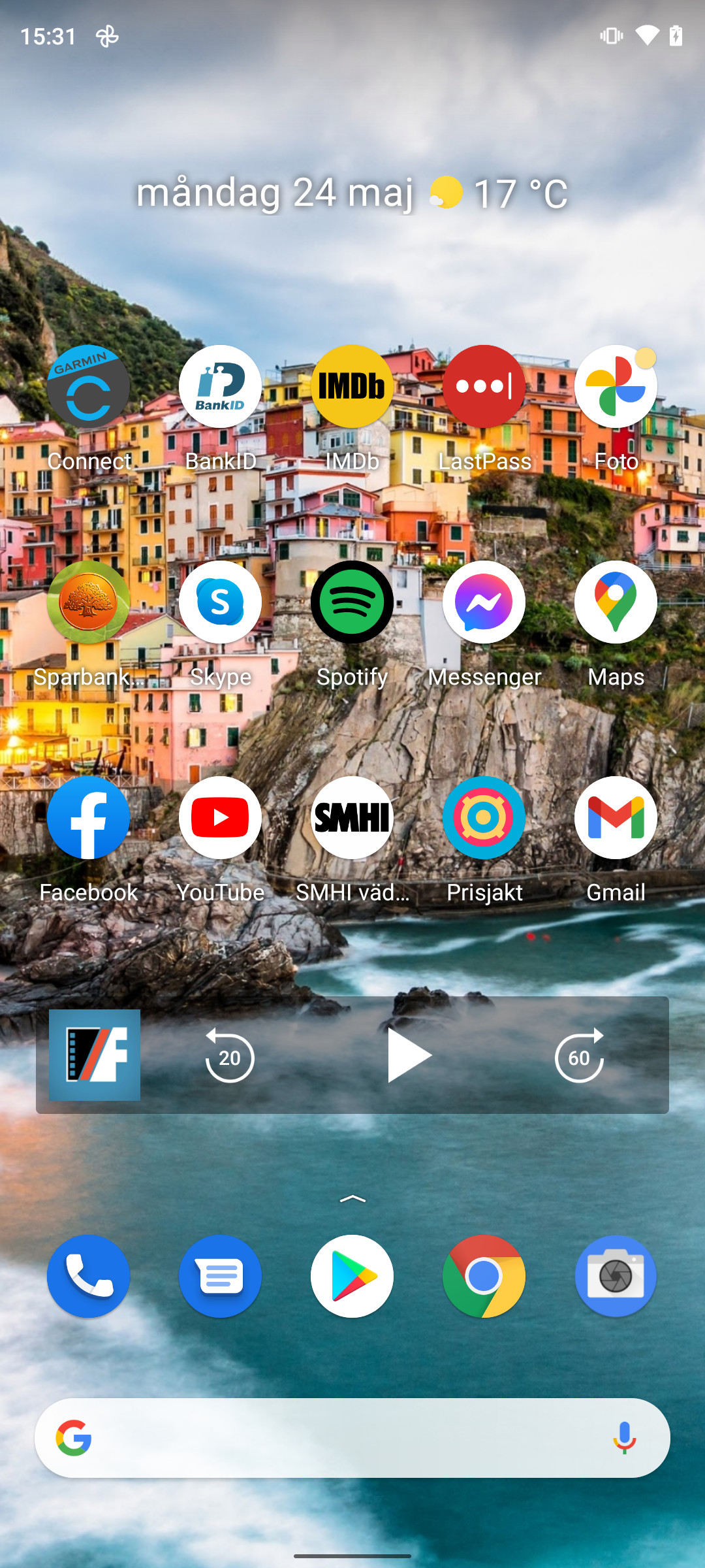Android One är grunden till Nokia X20. Det är ett enkelt operativsystem som är utvecklat och licensierat av Google. Varumärket garanterar en viss nivå av renhet och frihet från anpassningar. Det ger en användarupplevelse som är nära identisk mellan Android One-mobiler av olika tillverkare. Med Nokia X20 har Nokia lagt till en app för support-frågor, gjort några anpassningar av kameraappen och lagt till ett fåtal extrafunktioner för att till exempel styra skärmens vitbalans. Bortom det kör Nokia X20 en helt ren version av Android 11. Det inkluderar Googles snabbmeny för IoT-prylar, som dyker upp när vi trycker på på/av-knappen och Androids gestbaserade navigering.