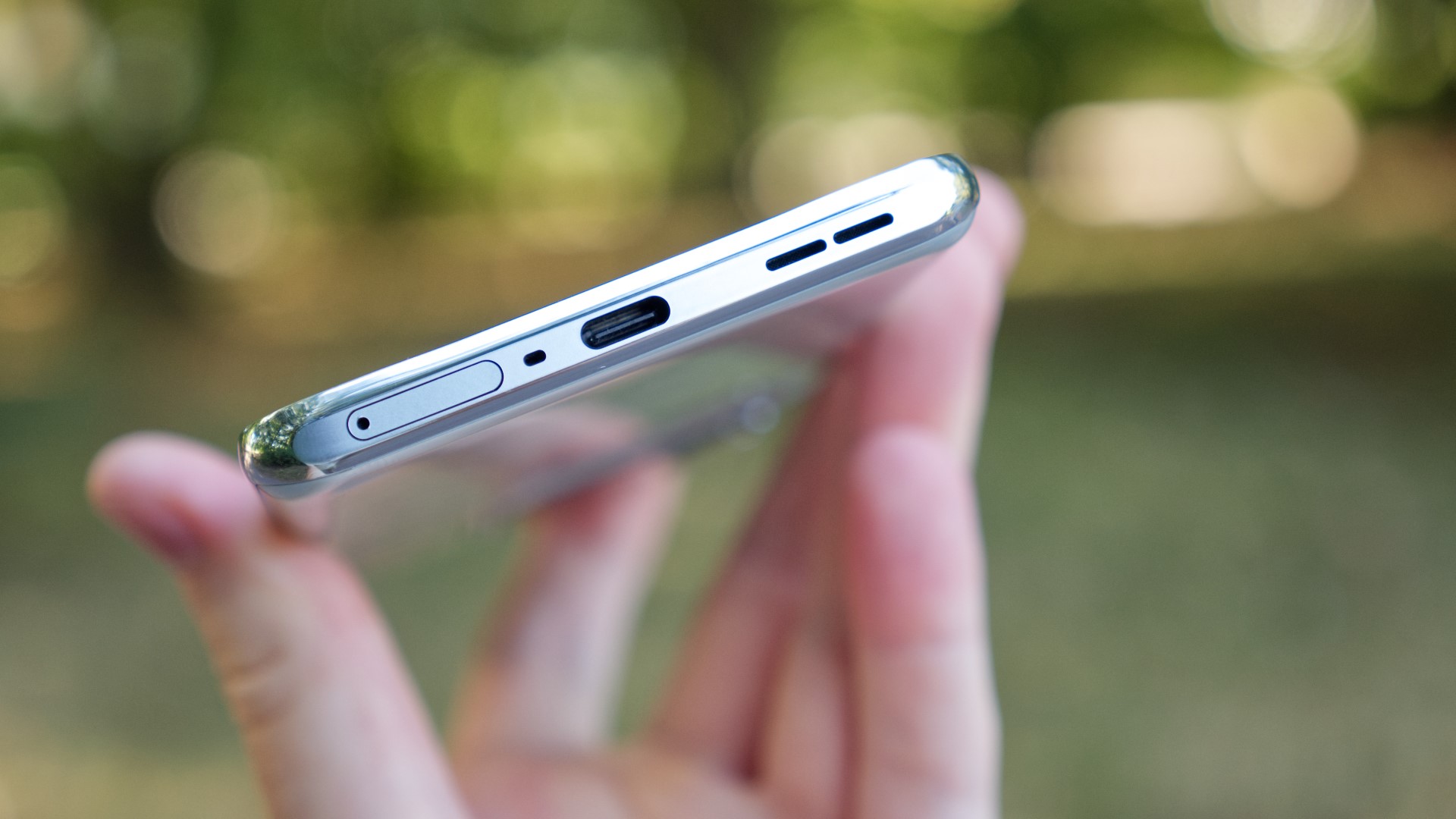 I övrigt inkluderar designen en USB C-port på undersidan tillsammans med en högtalare som assisteras av hörluren. Kortläsaren har plats för dubbla nanoSIM-kort men det finns varken stöd för eSIM eller microSD-kort. Designen är inte heller vattentålig, till skillnad från OnePlus 10 Pro. Åtminstone inte officiellt. Till exempel SIM-kortshållaren har tätning mot vatten men telefonen är antingen inte tillräckligt tålig och/eller så vill OnePlus inte betala för certifieringen. Kontentan är att 10T bör hållas borta från vatten och regn.