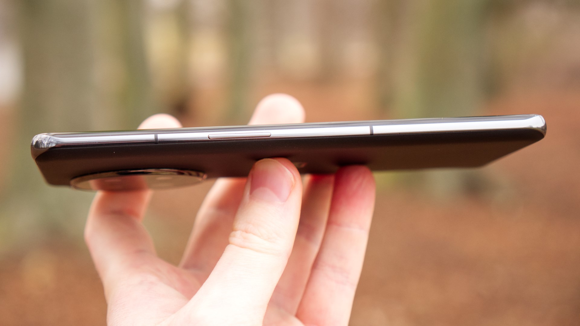 Sidorna är gjorda av metall och inkluderar en på/av-knapp på höger sida samt volymknappar på vänster sida. På höger sida gör dessutom ljudlägesreglaget comeback, efter att ha tagits bort i OnePlus 10T. Det gillar vi eftersom reglaget fortsätter att vara en av få unika funktioner för OnePlus mobiler.