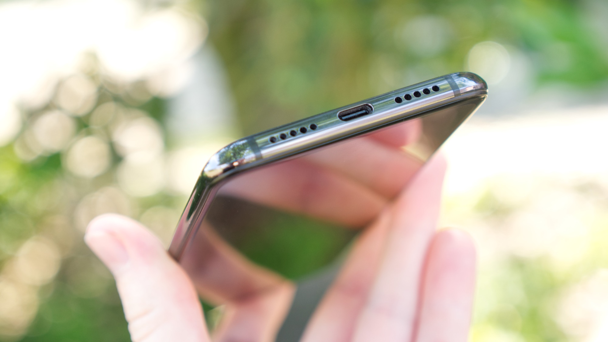 På vänster sida finns volymknappar och en SIM-kortshållare med plats för två nanoSIM-kort. Här finns ingen plats för ett microSD-kort. På ovansidan finns en sekundär mikrofon och på undersidan finns en USB Typ C-port, en mikrofon och högtalare. USB-porten har nu stöd för USB 3 för snabbare dataöverföring än tidigare, vilket alltid är uppskattat för bland andra videofilmare. Det finns alltså ingen hörlursport. OnePlus inkluderar inte heller någon hörlursadapter i lådan.