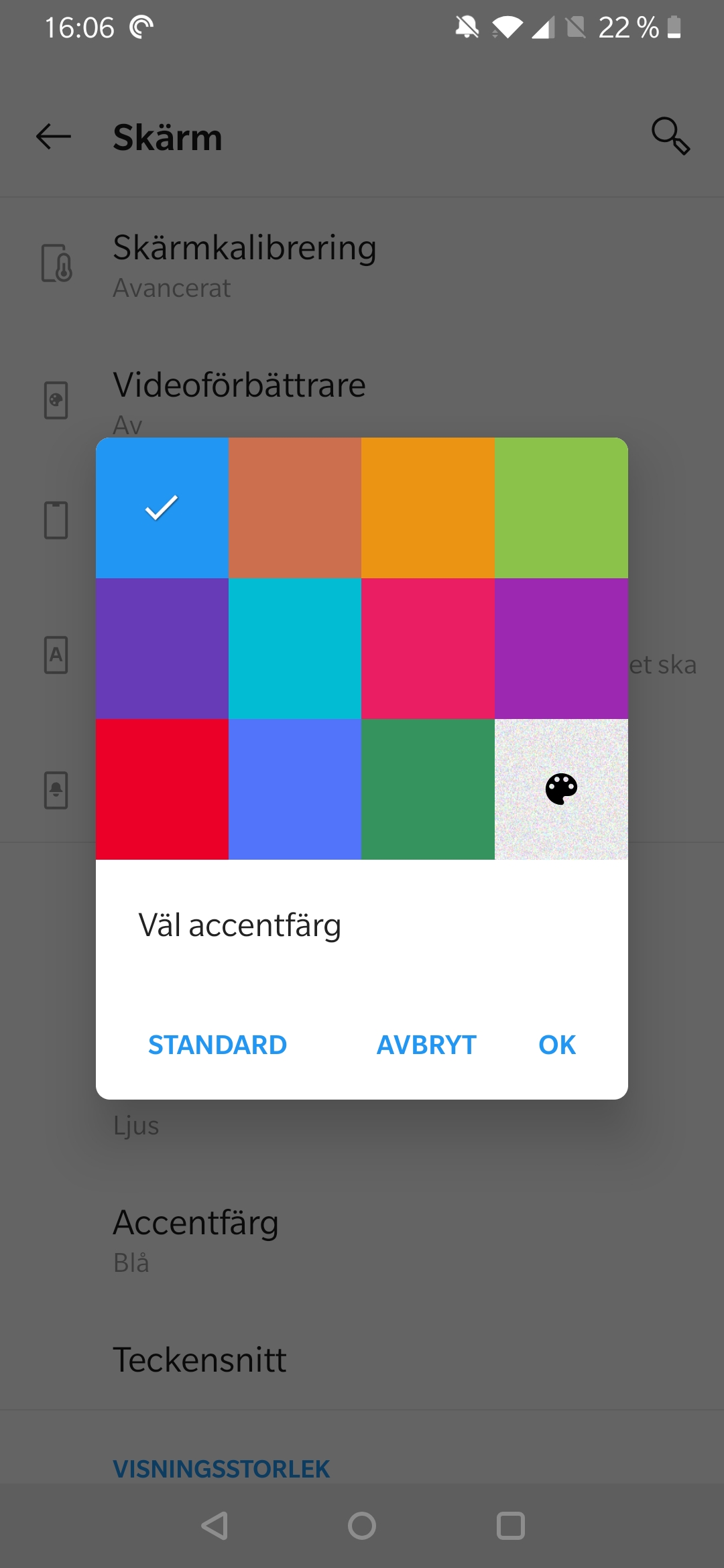 OnePlus 7 har en 6,4 tum AMOLED-skärm med en upplösning på 1 080 x 2 340. Det betyder att den erbjuder hög detaljrikedom som inte riktigt kan mäta sig med de absolut bästa. Skärmen presterar bra med hög ljusstyrka och bra färgåtergivning. Den presterar kort sagt nära identiskt med skärmen i OnePlus 6T. Förändringar i mjukvaran gör det dock svårare att välja ett färgexakt och färgrikt skärmläge. Det tidigare DCI P3-läget med balanserad D65-vitbalans är borta. Nu måste användaren själv försöka hitta rätt vitbalans på ett steglöst reglage. Även om skärmen i OnePlus 7 verkar vara nära identisk med skärmen i OnePlus 6T, är det nu betydligt svårare att få den att prestera lika bra.