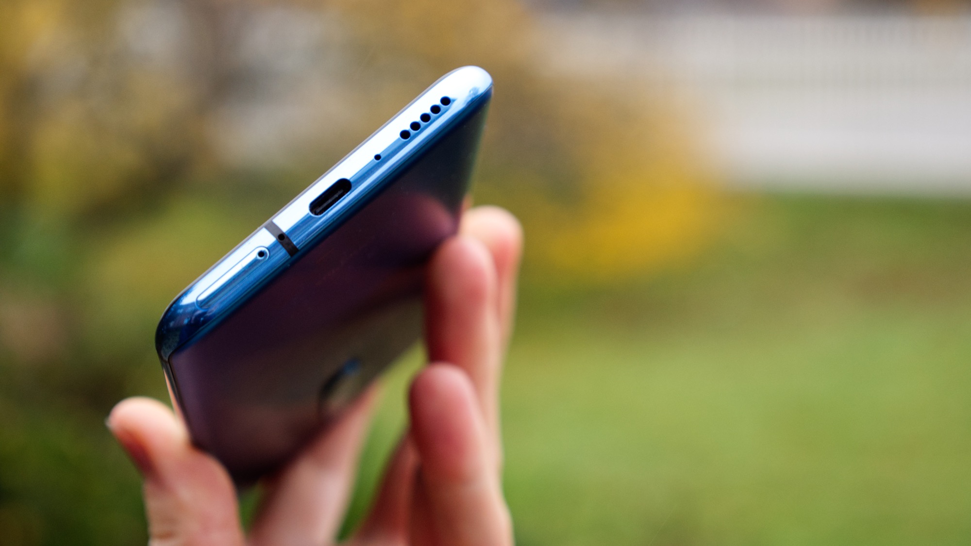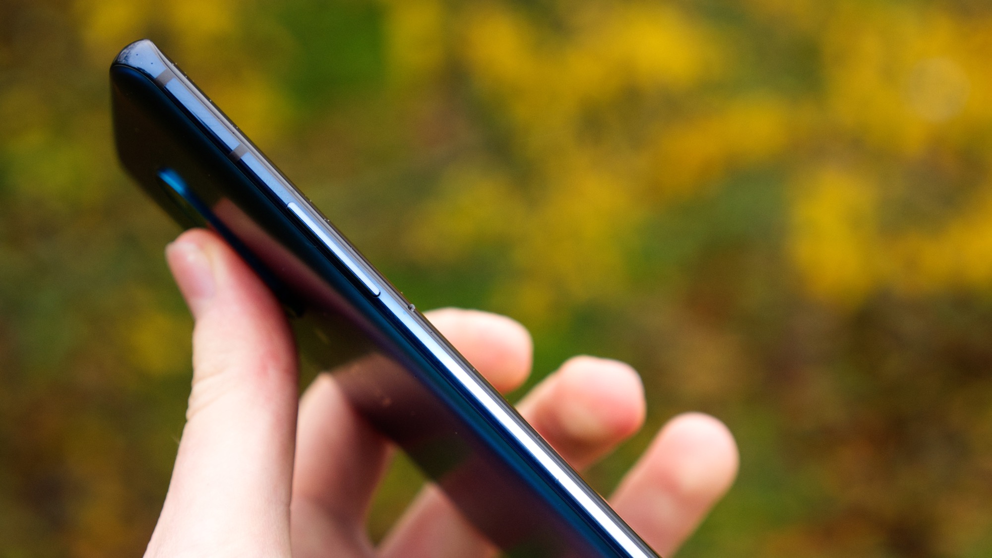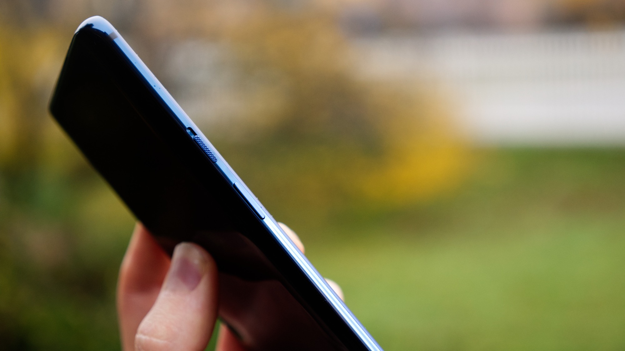 Den tonade färgen från bakstycket fortsätter längs sidorna av telefonen, där metallbandet följer samma toning som glasbakstycket. Längs höger sida finns en på/av-knapp och en brytare för att lägga telefonen i ett av tre ljudlägen. Vi älskar detta lilla fysiska reglage eftersom det passar särskilt bra till Googles senaste versioner av Android, där det har blivit svårare att snabbt justera ringvolym.