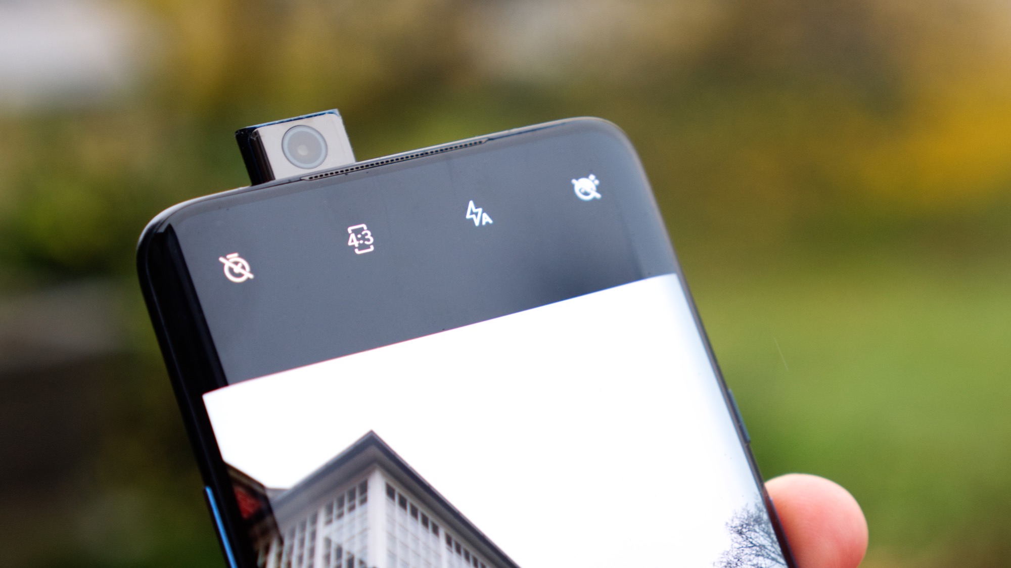 På vänster sida finns ett volymreglage. Likt på/av-knappen ger de två volymknapparna bra fysisk återkoppling och är lätta att använda. På undersidan av OnePlus 7T Pro finns en USB Typ C-port, en mikrofon, högtalare och korthållare med plats för dubbla nanoSIM-kort. Här finns alltså ingen microSD-kortplats eller hörlursport. På ovansidan finns en sekundär mikrofon och en öppning för kameran. Istället för att ha en selfiekamera på framsidan, vid skärmen, har nämligen OnePlus 7T Pro en kamera som kan lyftas upp ur telefonen för att ta en bild. Kameran lyfts upp på runt en halv sekund. Den stängs så fort något trycker mot den eller om telefonen tappas. Även om rörliga delar alltid riskerar att gå sönder eller slitas säger OnePlus att den är gjord för att hålla för upp till 300 000 användningar. Det bör täcka även den mest flitige användaren i minst fem år.