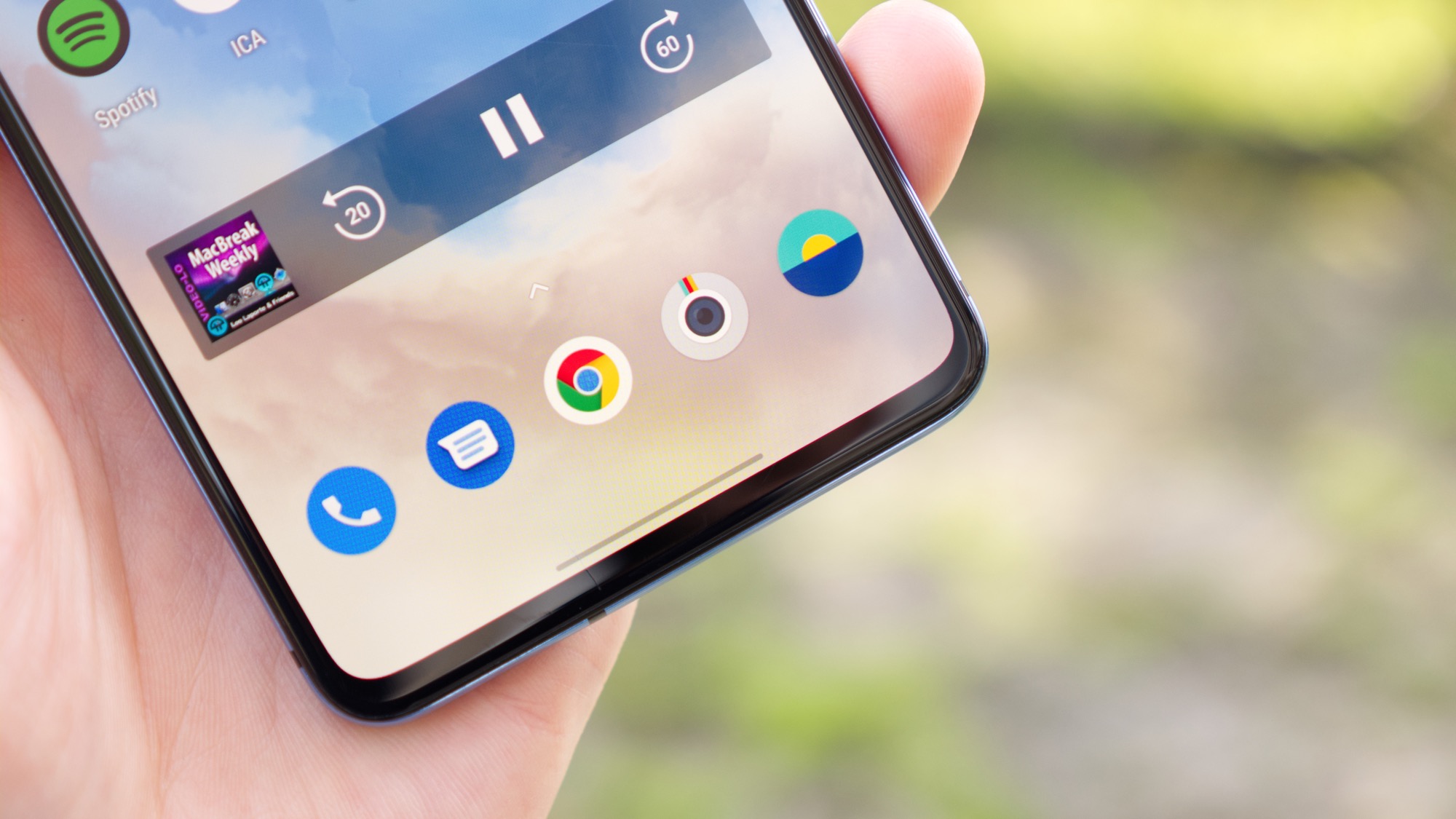 OnePlus 7T har inte en rundad skärm, till skillnad från 7 Pro. Det bidrar till att få OnePlus 7T att kännas lite mer bekväm i handen. De större skärmramarna längs sidorna ger nämligen större marginal för ett stadigt grepp om telefonen. Det sänker dessutom sannolikt kostnaden för reparation om något skulle gå snett.