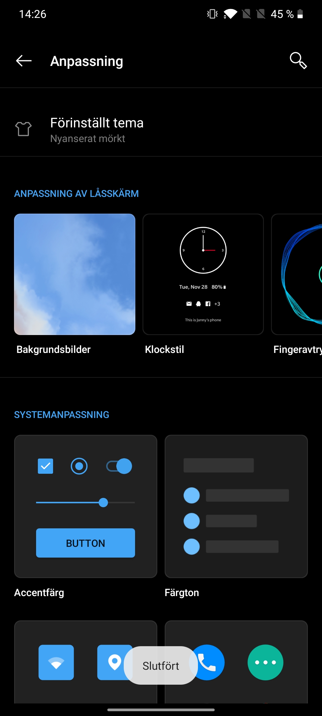 En annan nyhet i Android 10 är Mörkt läge. Det gör stora delar av gränssnittet mörkt för att bland annat spara på telefonens energikonsumtion. För OnePlus 7T är inte detta någon större nyhet, eftersom OnePlus redan haft ett liknande system. Fördelen med Android 10 är i alla fall att ett bredare stöd kan användas av apparna. OxygenOS 10 har dessutom en extra inställningsmeny för att anpassa appikoner och operativsystemets utseende i allmänhet. Det gör de tidigare utspridda inställningarna lite lättare att hitta.