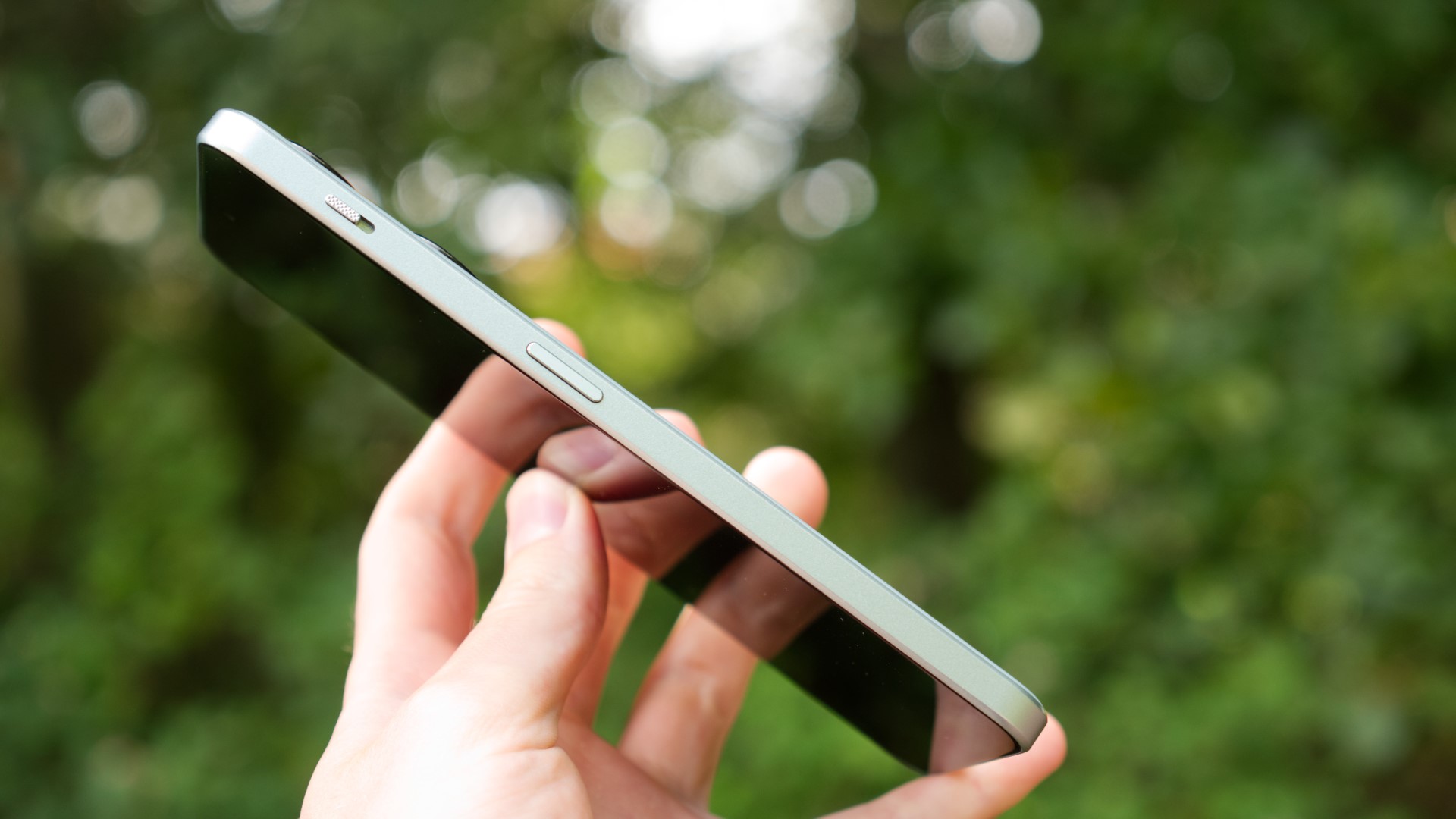 Längs höger sida sitter en på/av-knapp, medan volymknapparna sitter på andra sidan. Det gör det lätt att trycka på rätt knapp. På höger sida finns också ett fysiskt reglage för att ställa telefonen i Tyst, Vibrera eller Ring-läge. Det är riktigt praktiskt, det är en av de mest praktiska detaljerna med OnePlus hårdvarudesign och det är en detalj som sträcker sig tillbaka till OnePlus rötter.