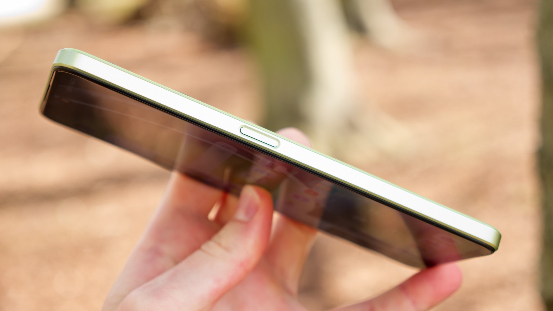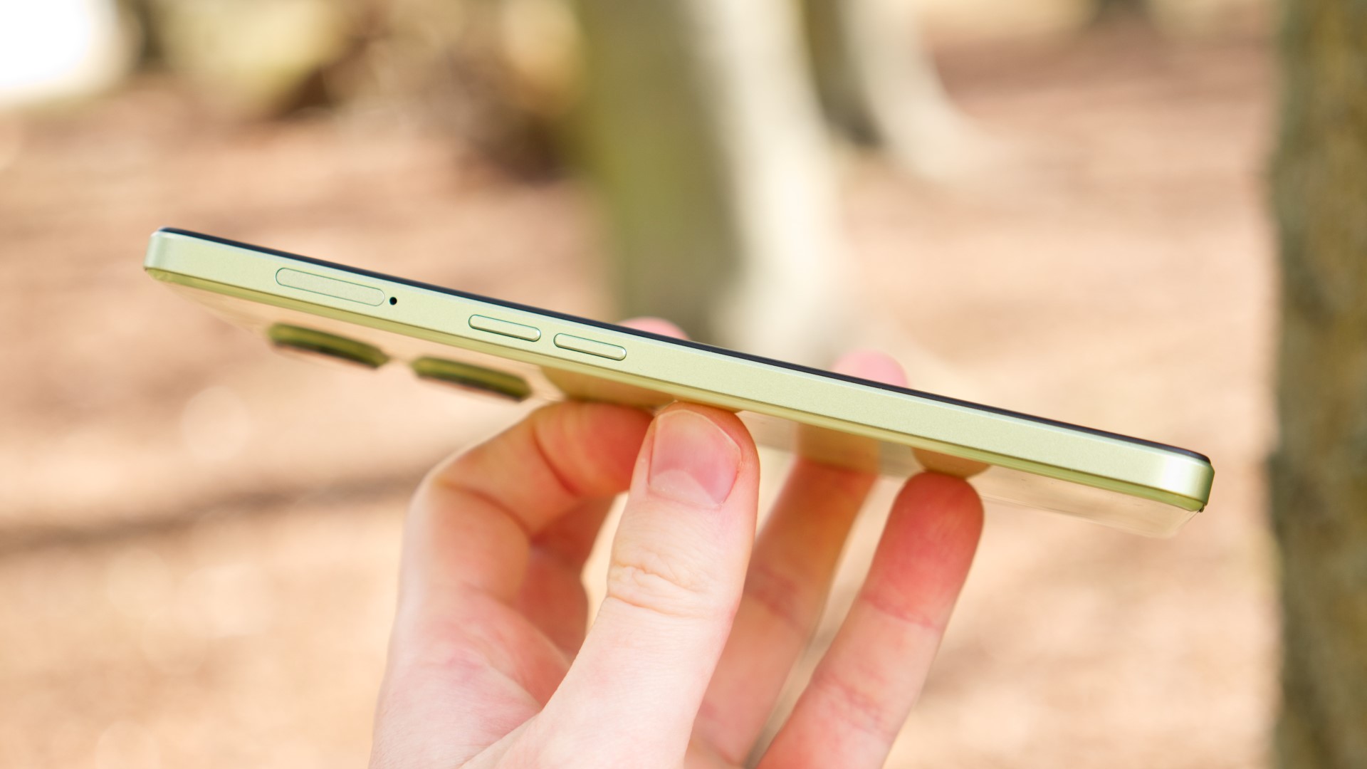 Sidorna är också gjorda av plast, med en metall-liknande finish. Längs höger sida finns en på/av-knapp med en inbyggd fingeravtrycksläsare. Den är snabb och pålitlig. Den praktiska positionen längs sidan gör det enkelt att låsa upp telefonen. Längs vänster sida finns dubbla volymkontroller och en kortplats med plats för dubbla nanoSIM-kort eller ett nanoSIM- och ett microSD-kort. Det finns inget stöd för eSIM. Det finns inte heller något ljudreglage, som OnePlus annars är kända för.