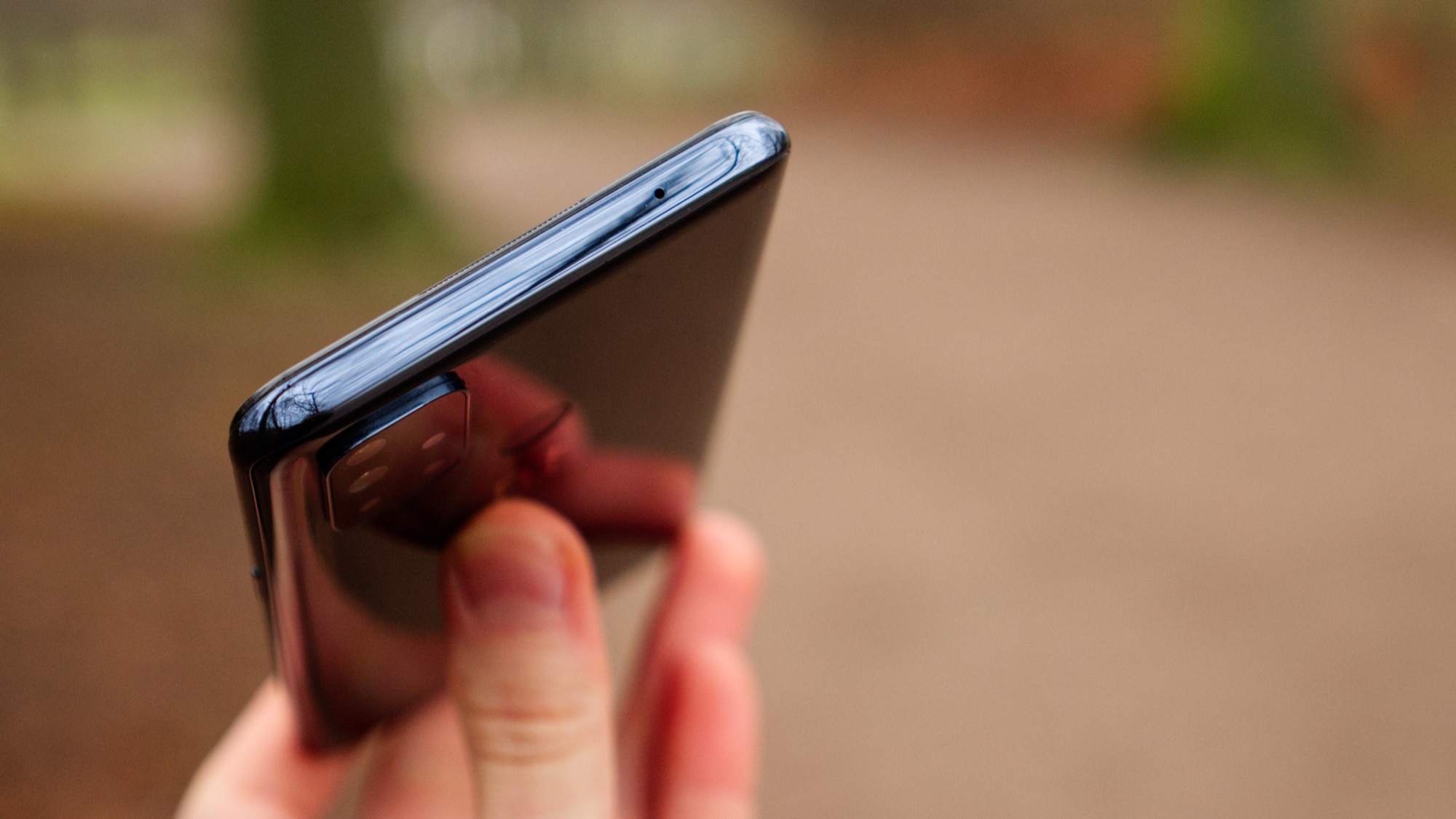 På baksidan sitter en funktion som har blivit allt mer ovanlig: en kapacitiv fingeravtrycksläsare. Den är placerad för att vara lätt att nå med ett finger. Så länge vårt finger inte är blött fungerar läsaren snabbt och pålitligt – minst lika bra som konkurrenternas skärmintegrerade alternativ. Fördelen med den bakre läsaren är att vi kan känna oss fram till den och enkelt låsa upp telefonen medan vi plockar upp den ur fickan. Nackdelen är att vi måste plocka upp telefonen för att låsa upp den om den ligger på ett bord. På tal om platta bord så vinglar telefonen lite när den ligger på platta underlag. På baksidan finns nämligen en stor kameramodul med fyra kameror som sticker ut en millimeter från bakstycket.