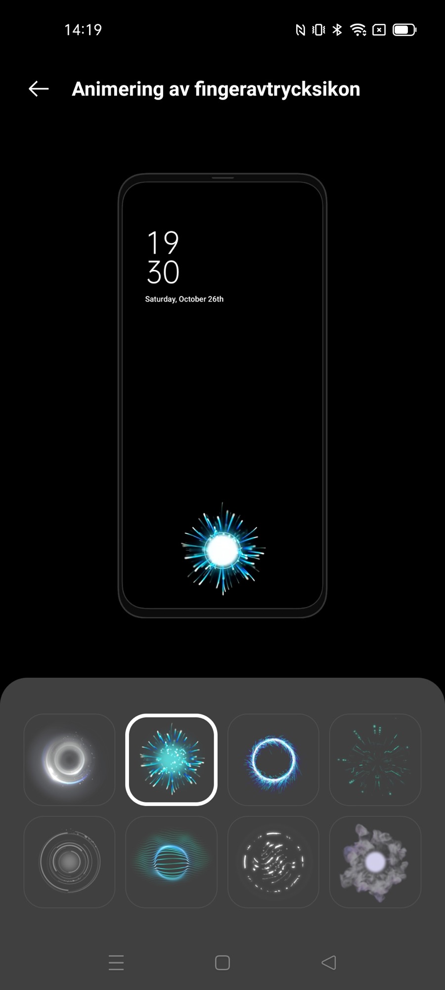 För användare som är intresserade erbjuder Realme flera inställningar för att anpassa operativsystemets utseende. Det går att välja mellan ovanligt många former för ikoner på både hemskärmen och snabbgenvägar och färger kan anpassas från enstaka färger till hela färgscheman. Det går till och med att välja mellan åtta olika animationer för fingeravtrycksläsaren.