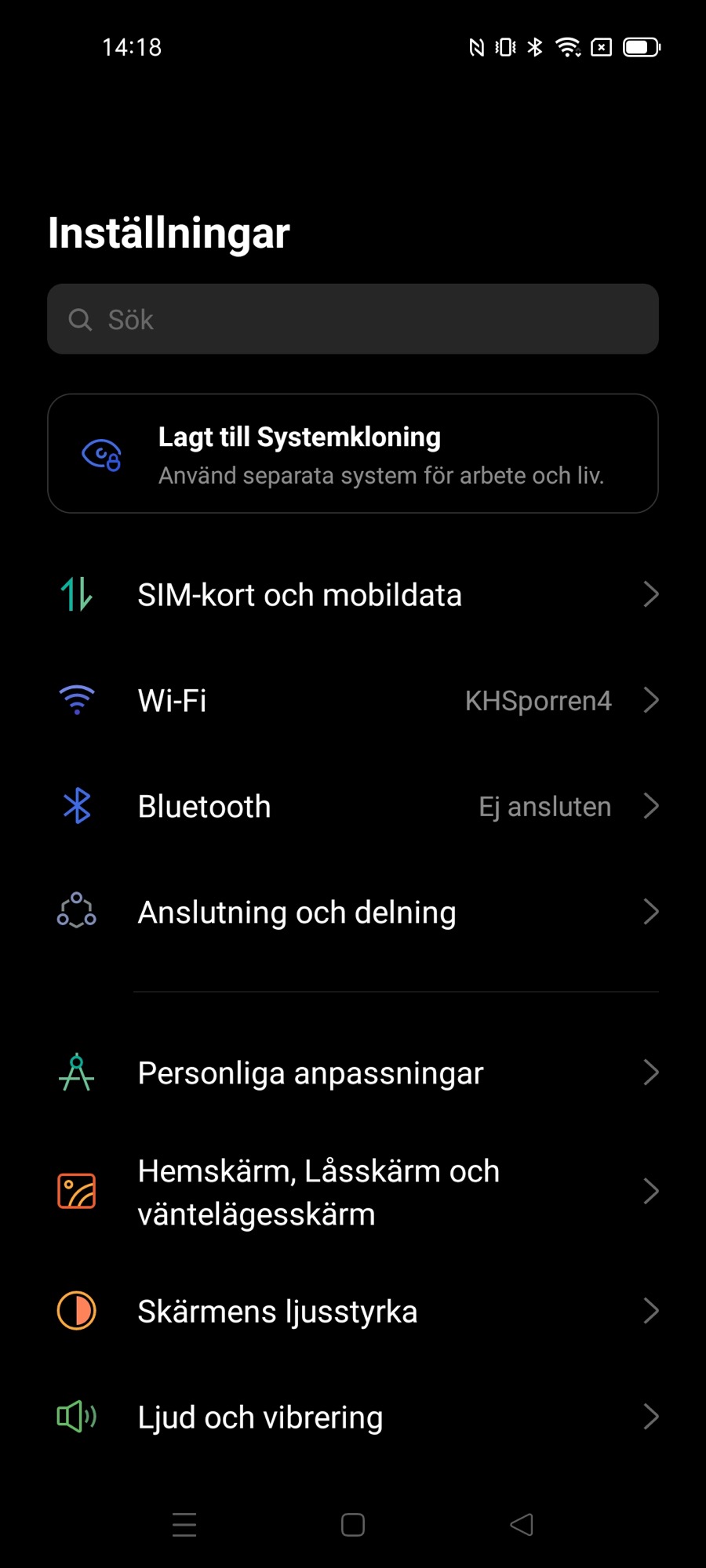 I Inställningsappen har Realme rört om lite. Företagets eget designspråk är tydligt men de lite underliga prioriteringarna från Realme 1.0 är borta. Realme 2.0 har en betydligt mer logisk ordning av inställningar som prioriterar de mest använda.