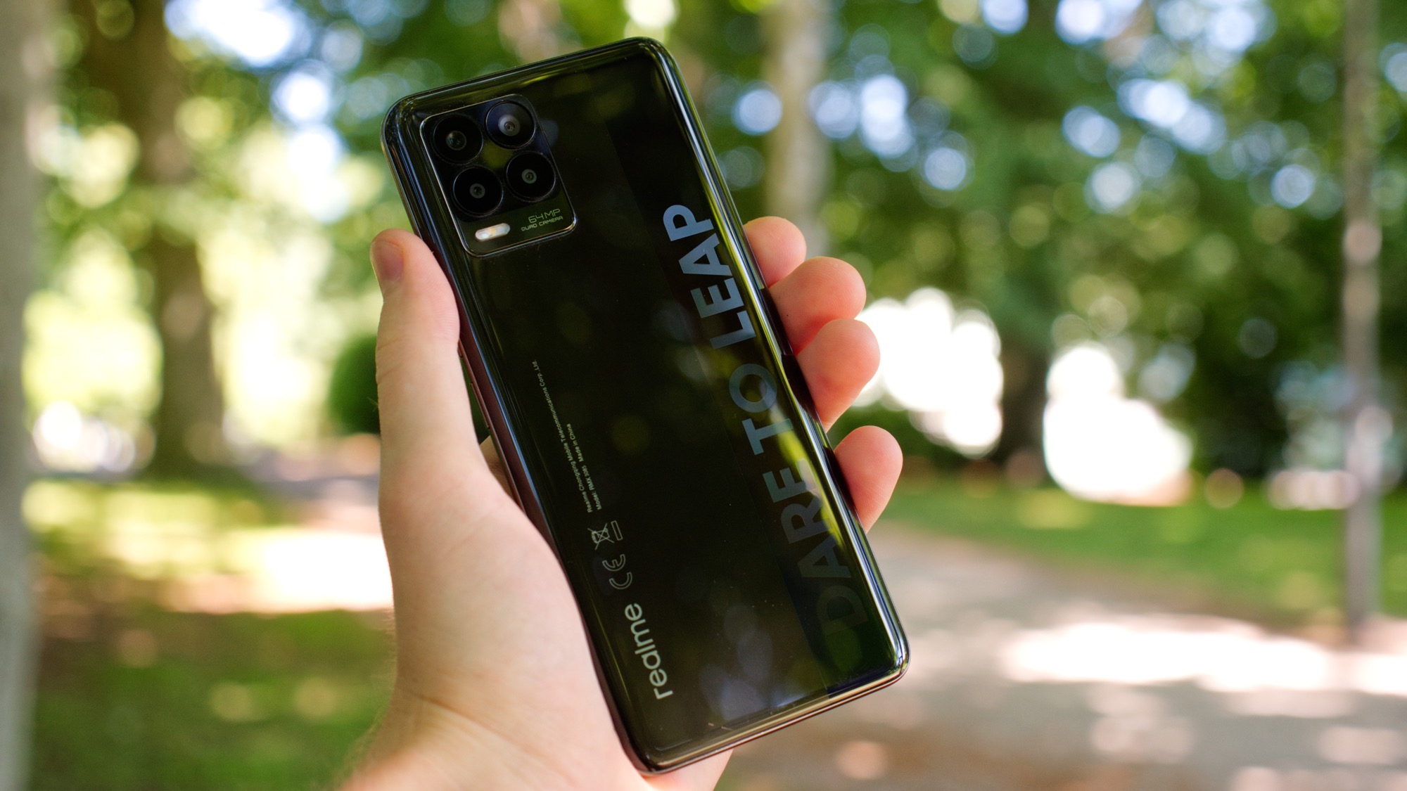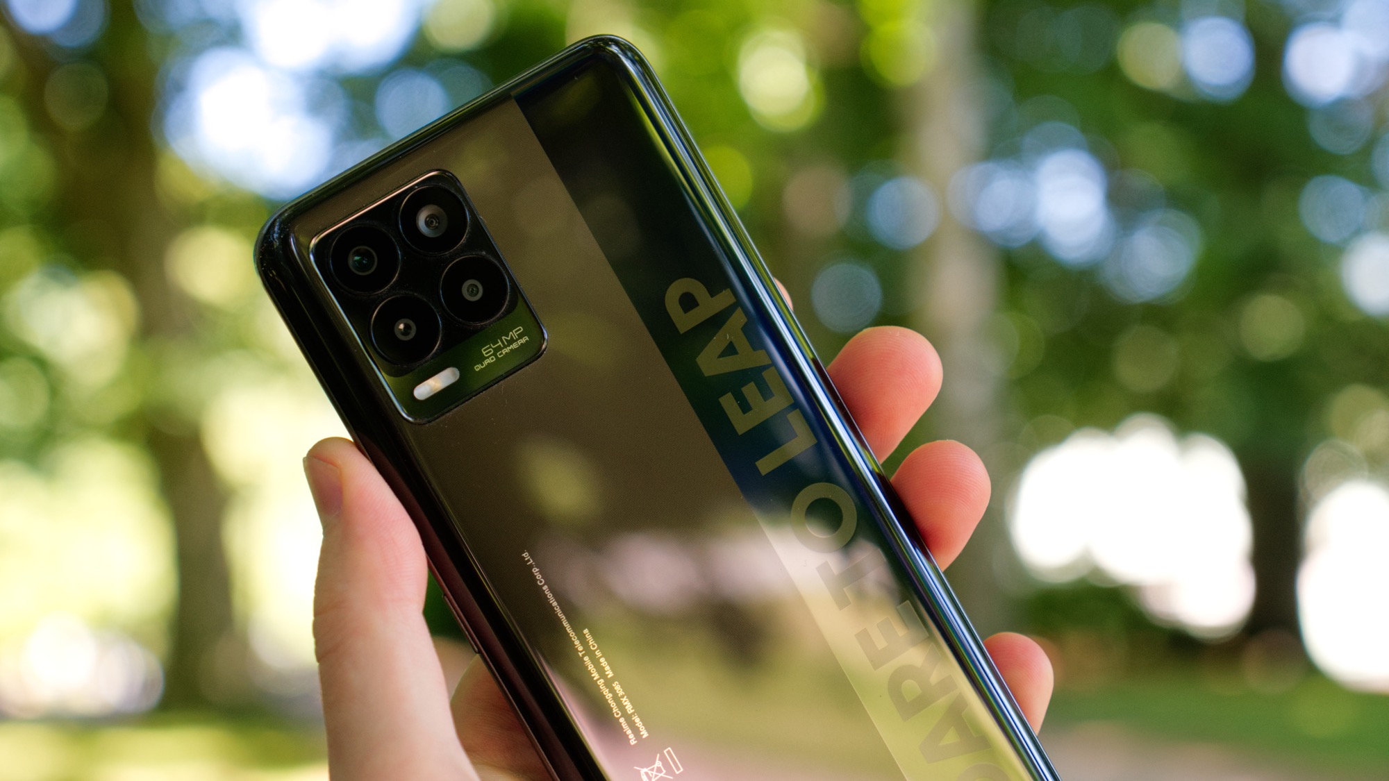Realme 8 vågar sticka ut och gör det med en skrikande text på sin baksida. Med ett skal på över bakstycket är det ett problem som kan undvikas. Då återstår en ganska klassisk design som är praktisk och väl byggd för det låga priset.