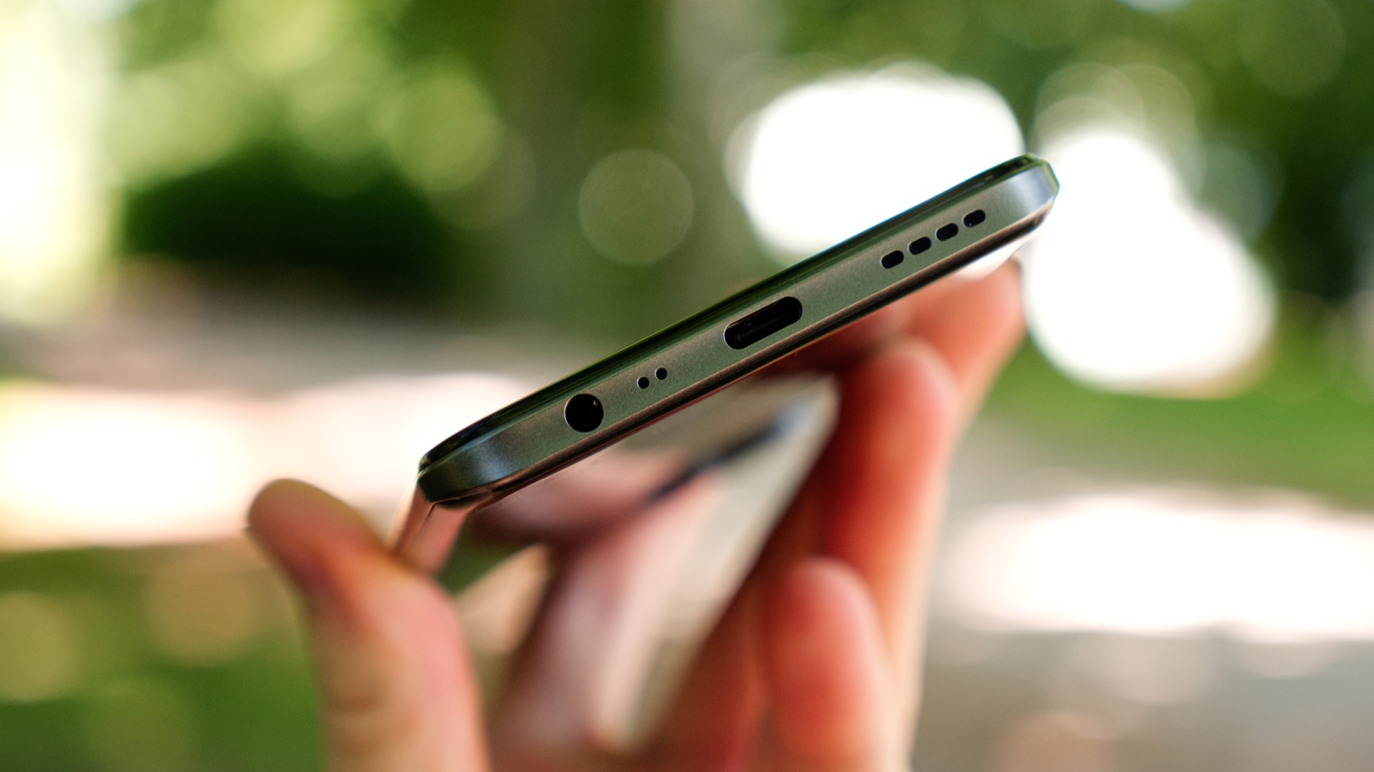 Även sidorna av telefonen är gjord av plast. Med det sagt är Relame 8 en väl konstruerad mobil. Baksidan är styv och låter inte så ihåligt som vissa konkurrenter kan göra när vi kackar med ett finger på den. Sidorna är platta men möter ett rundat bakstycke. Längs höger sida finns en på/av-knapp och två volymknappar som ger helt okej fysisk återkoppling. Längs ovansidan finns en sekundär mikrofon medan undersidan bjuder på en mikrofon, högtalare, hörlursport och USB-C-port. USB-C-porten är USB 2.0-baserad, vilket är vanligt i klassen. Den har dock en mer ovanlig brist. Den saknar stöd för USB OTG. Det betyder att den inte fungerar med till exempel fysiska säkerhetsnycklar som ansluts med USB.