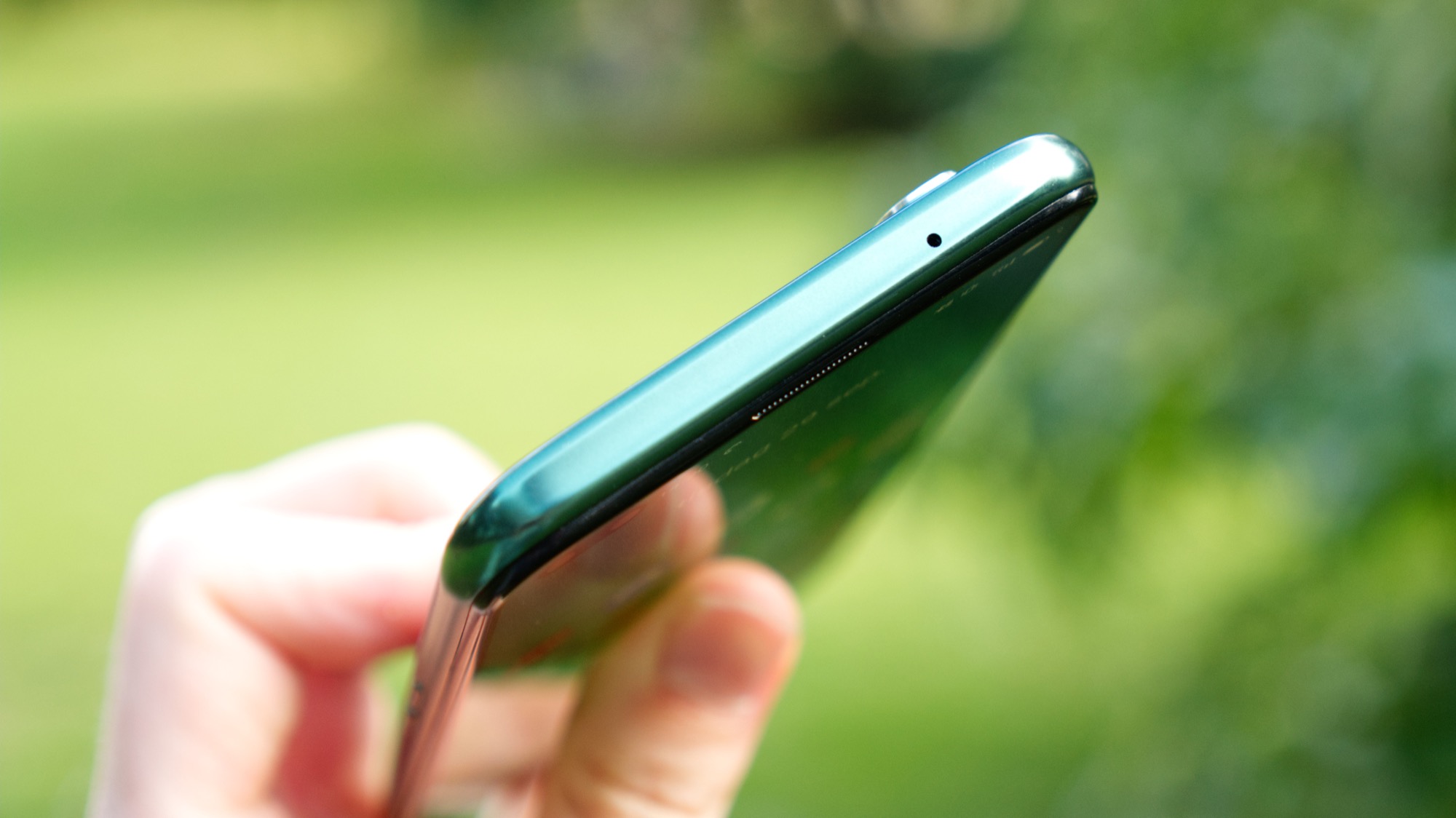 Längs sidorna är det plast som gäller, en rimlig kompromiss för klassen. Här erbjuder Relame X50 en på/av-knapp som också fungerar som fingeravtrycksläsare. Den är snabb och pålitlig och lite mer förlåtande för smutsiga fingeravtryck än den skärminbyggda läsaren i Xiaomis modell. Vi föredrar X50-läsaren men skillnaden i användarupplevelsen är inte stor.