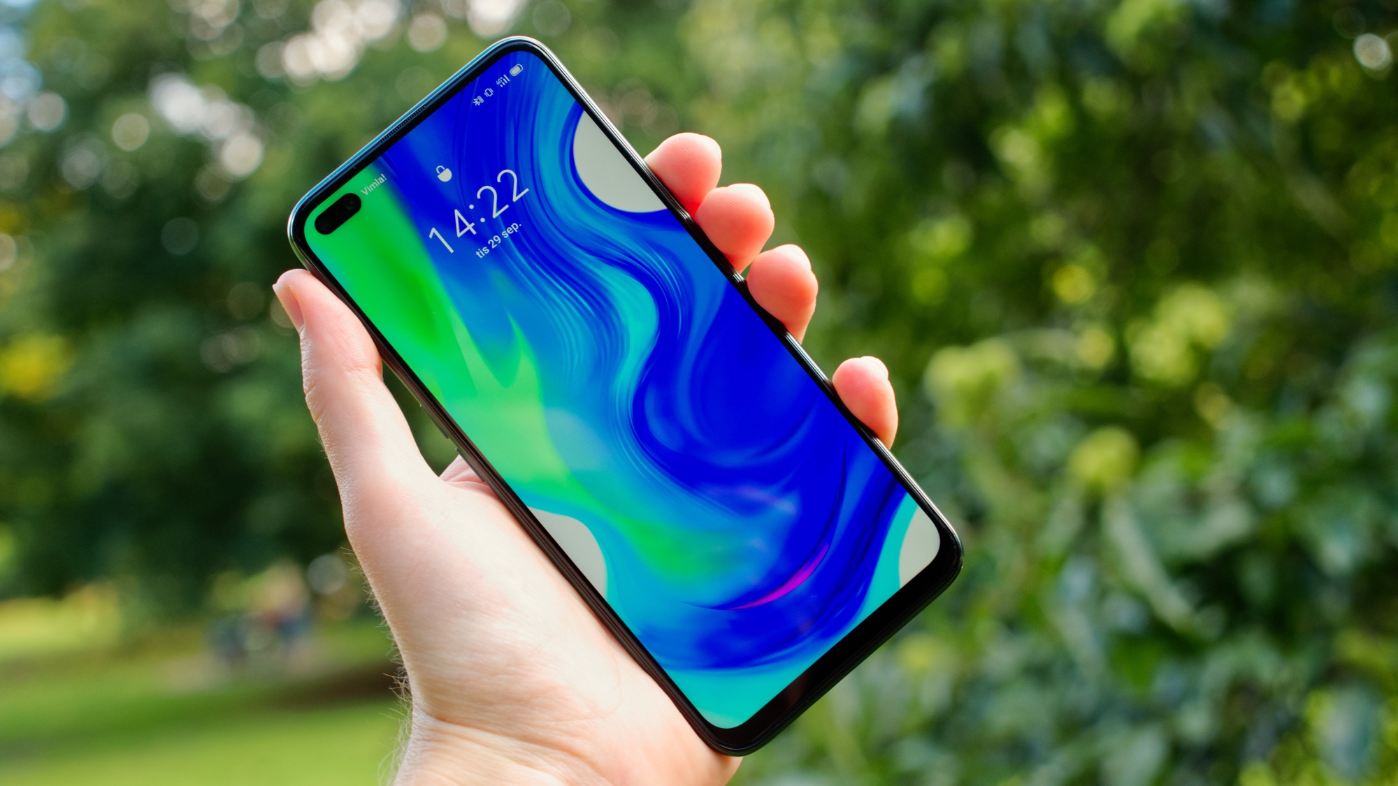 Framsidan har som nämnt en 6,57 tum skärm. Den är LCD-baserad, istället för Xiaomis AMOLED-teknik. De två selfiekamerorna får plats i ett avlångt hål i skärmen. Hålet omringas av en skugga, som är en konsekvens av LED-bakbelysningens svårigheter att lysa jämnt runt hålet. Ovanför skärmen finns en hörlur och ett par sensorer. Något som saknas är en notislampa. Eftersom det inte heller finns någon Alltid-på-funktion för skärmen, går det inte att veta om en notis har kommit in utan att väcka skärmen.