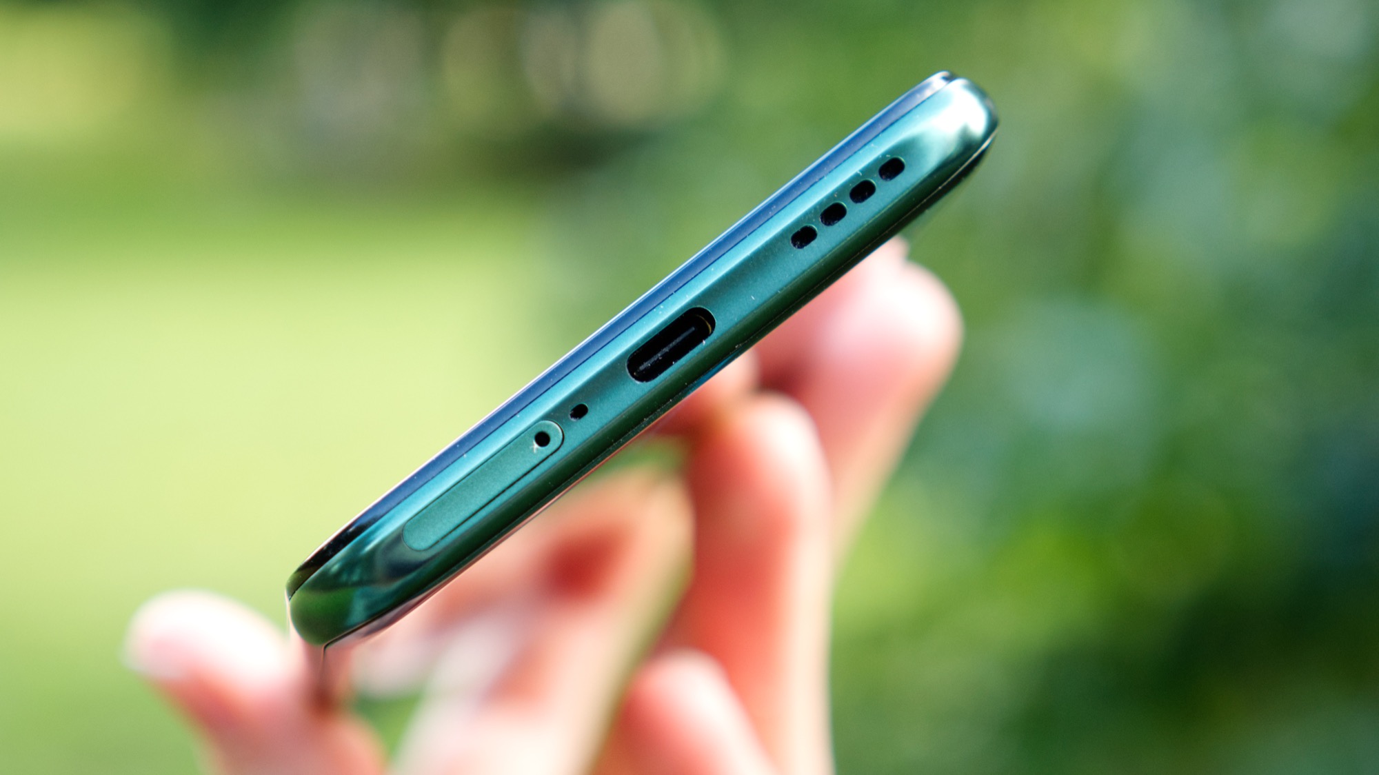 Vänster sida bjuder på två volymknappar som sitter ovanligt långt ner på sidan av telefonen, vilket gör dem lätta att nå. Undersidan har en USB Typ C-port, mikrofon, högtalare och en minneskortläsare med plats för dubbla nanoSIM-kort. Här finns alltså ingen microSD-kortläsare. En port som saknas är en hörlursport. Det är en av de tydligaste nackdelarna med Realme X50, som konkurrerar med Mi 10 Lite 5G som har en klassisk analog hörlursport.