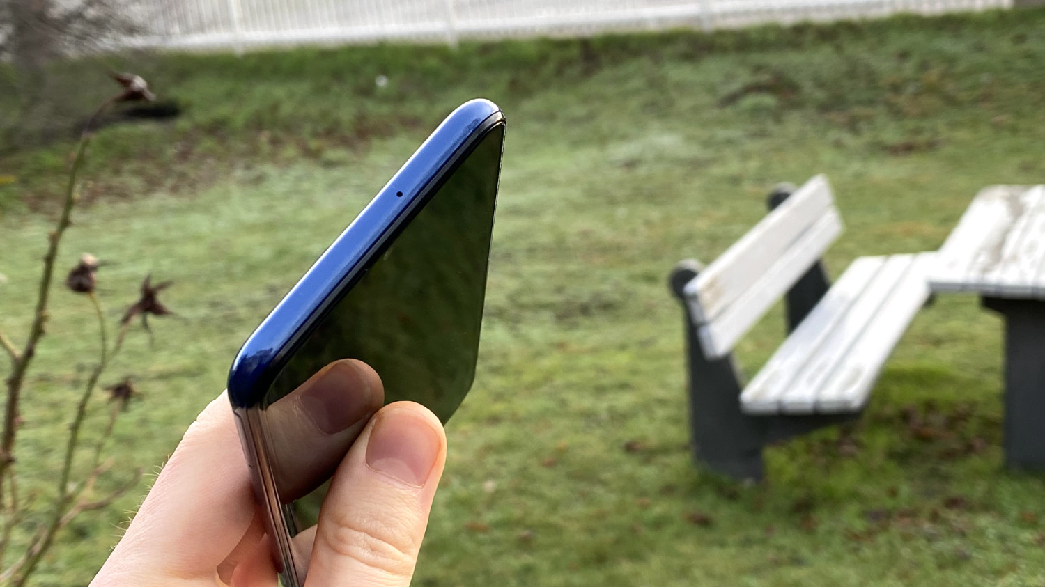 Plastbaksidan är rundad längs sidorna för att ligga bekvämt i handen. På baksidan finns en ergonomiskt placera fingeravtrycksläsare som är pålitlig men som ofta tar 1–2 sekunder att låsa upp mobilen. Den är alltså betydligt smidigare än en PIN-kod men inte mycket snabbare. Det finns stöd för ansiktsigenkänning men det fungerar dåligt i inomhusmiljöer och är därför ett frustrerande dåligt alternativ.