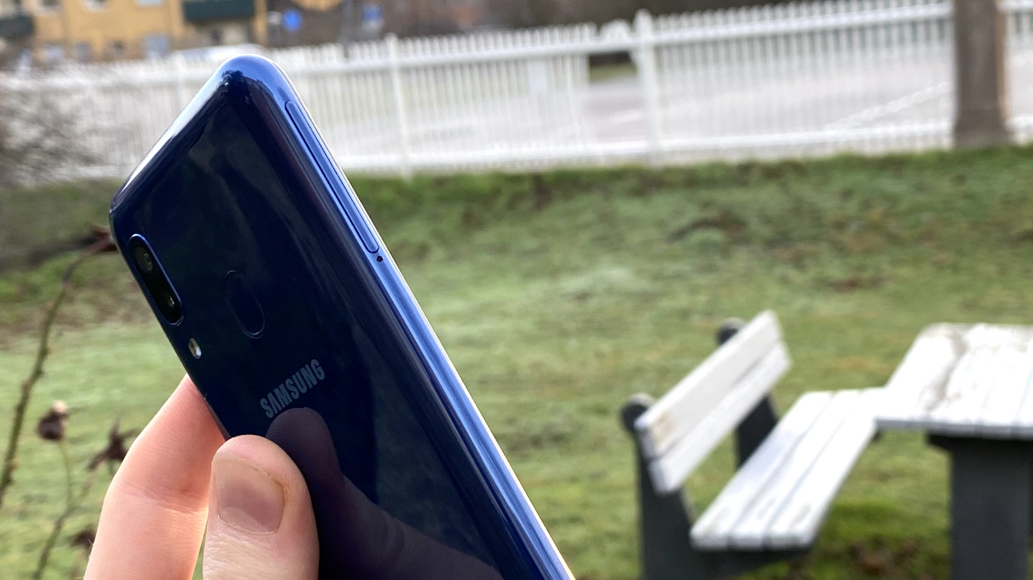 Galaxy A20e är en billig mobil med en plastig men stadig konstruktion. Det är inget konstigt för klassen. Plastbaksidan gör dock att ett skal är ett måste och till skillnad från konkurrenterna ingår inget skal i lådan.