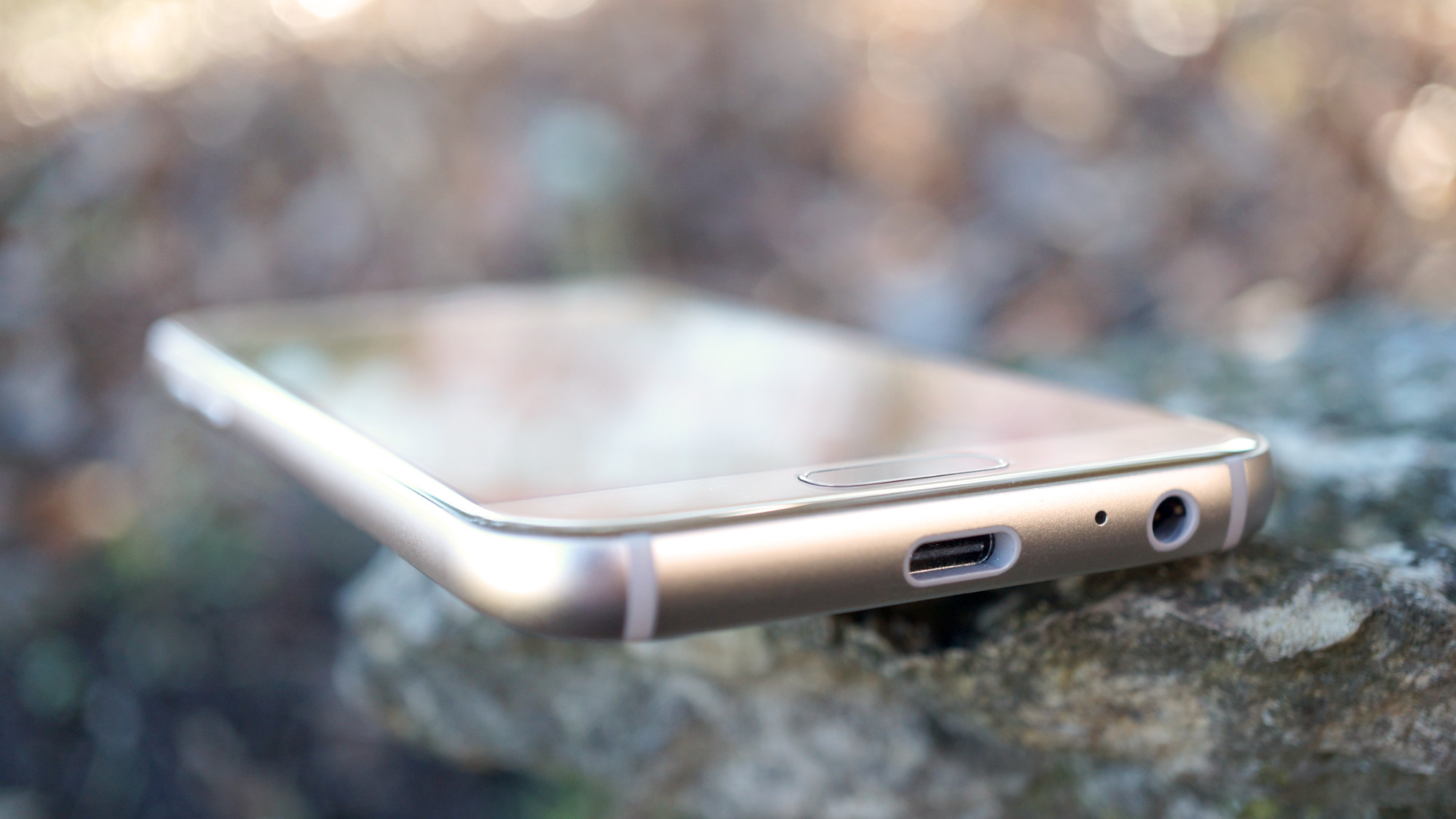 Bredvid USB-porten sitter en 3,5 millimeter hörlursport och en mikrofon men ingen högtalare. Samsung har flyttat telefonens högtalare från undersidan till telefonens högra sida. Högtalarens position är både annorlunda och opraktisk. När den hålls i landskapsläge är det lätt hänt att ett finger täcker gallret framför högtalaren.