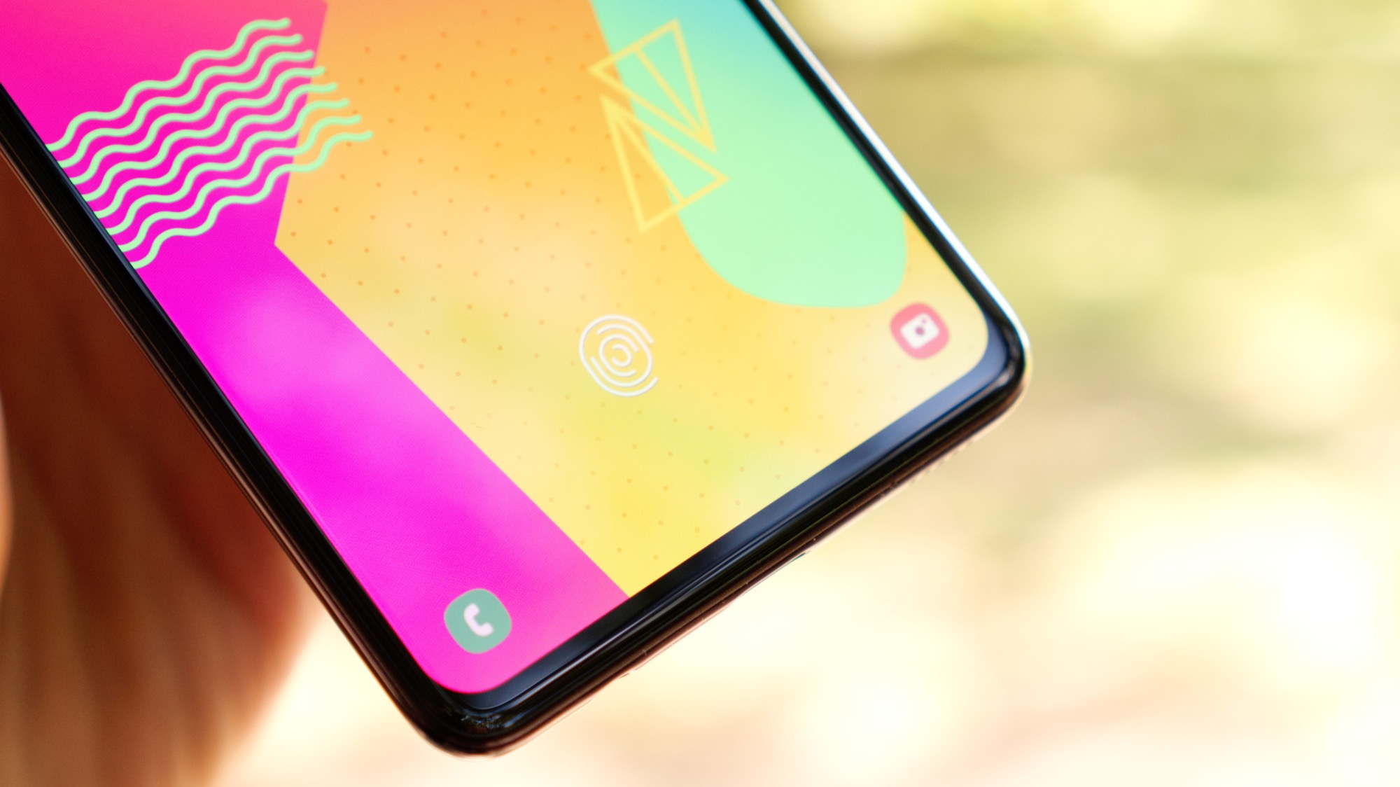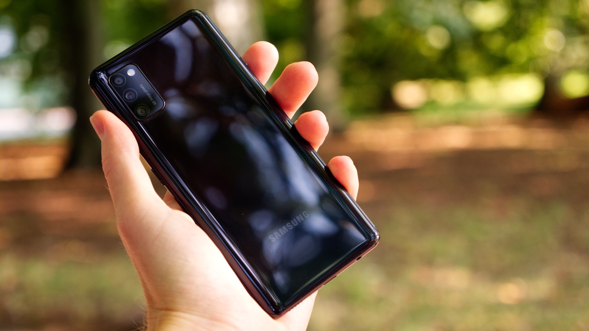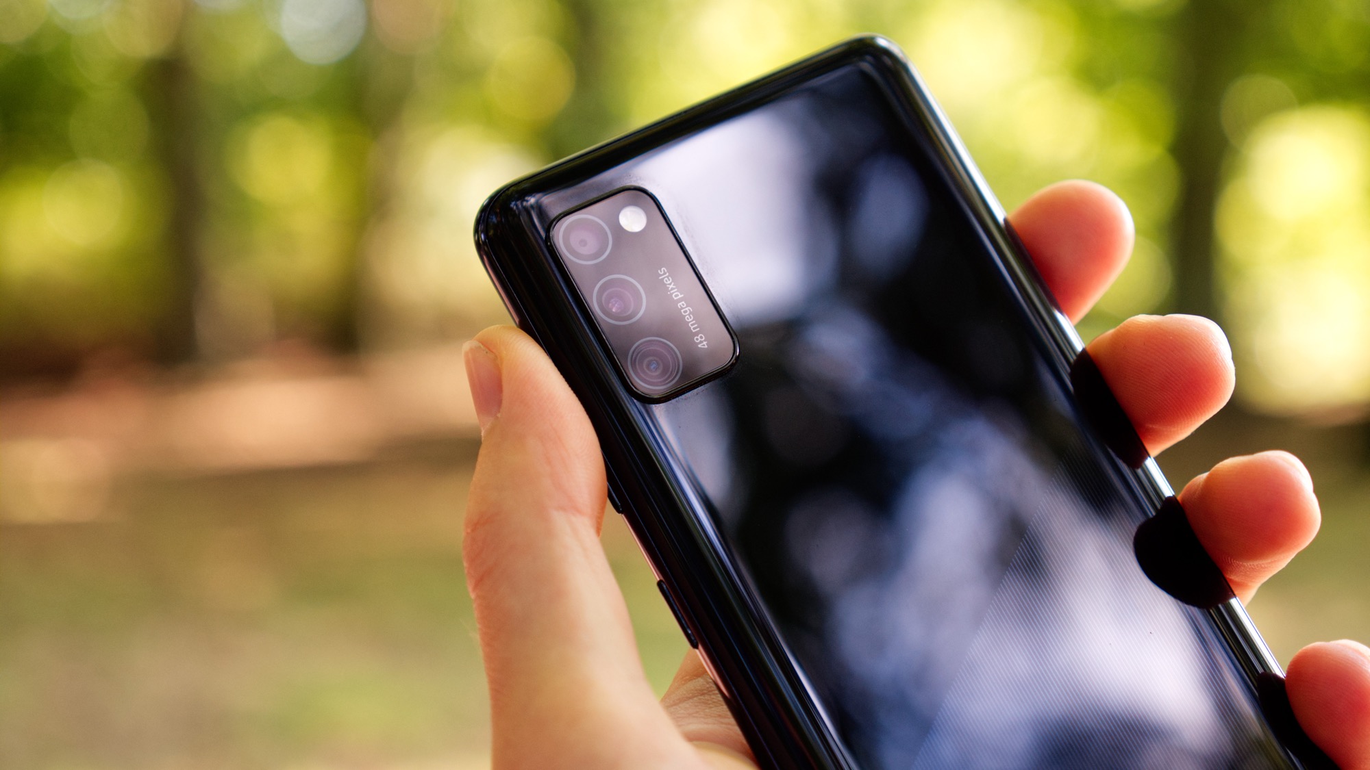 Framsidan av Galaxy A41 har en 6,1 tum skärm med tunna skärmramar och en numera klassisk flärp för den främre kameran. Designen följer formulär 1A för en modern smartphone. Galaxy A41 har ingen ambition av att fånga blickar och gör det inte heller. Skärmen har dock en ovanligt modern hemlighet. Galaxy A41 är en av de billigaste mobilerna som vi har testat med en fingeravtrycksläsare i skärmen. Den optiska läsaren påminner mycket om läsare vi tidigare använt i Samsungs mellanklassmobiler. Det betyder att den ofta presterar sisådär. Den är inte snabb och inte heller särskilt pålitlig. Den har svårt att läsa torra, fuktiga och smutsiga fingrar. Den behöver ett rent och fint finger för att fungera som tänkt. Det gör den lite frustrerande att använda. En bättre kapacitiv läsare hade nog passat bättre i prisklassen.