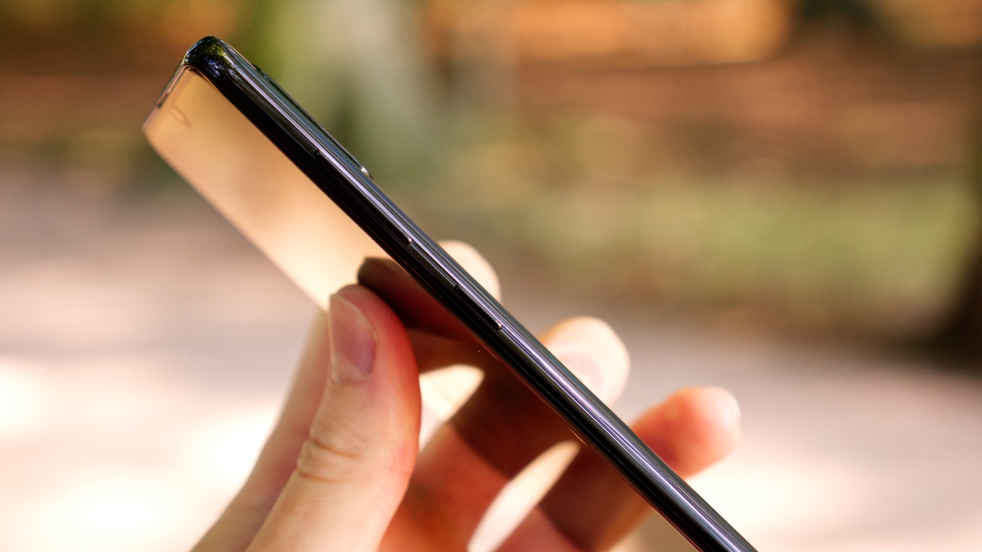 Längs höger sida finns en på/av-knapp och två volymknappar. De ger bra fysisk återkoppling men på/av-knappen låter väldigt högt. Längs ovansidan finns en sekundär mikrofon och längs vänster sida finns en kortläsare. Här finns plats för dubbla nanoSIM-kort och ett microSD-kort. Det är flexibilitet som är särskilt uppskattad i en budgetmobil med relativt begränsat lagringsutrymme. På tal om flexibilitet så erbjuder undersidan både en USB Typ-C-port och en hörlursport. Här finns dessutom en högtalare och en mikrofon.