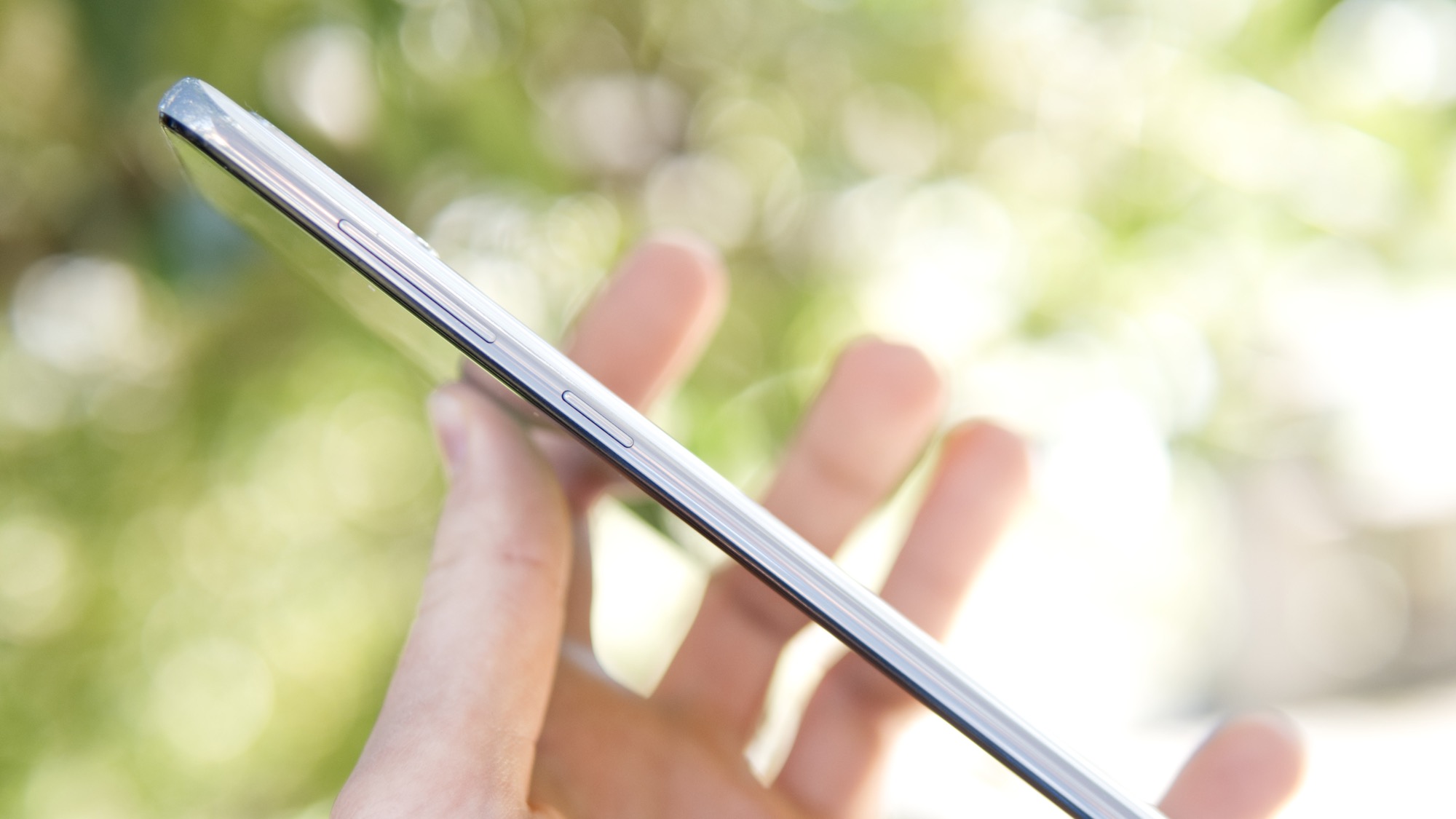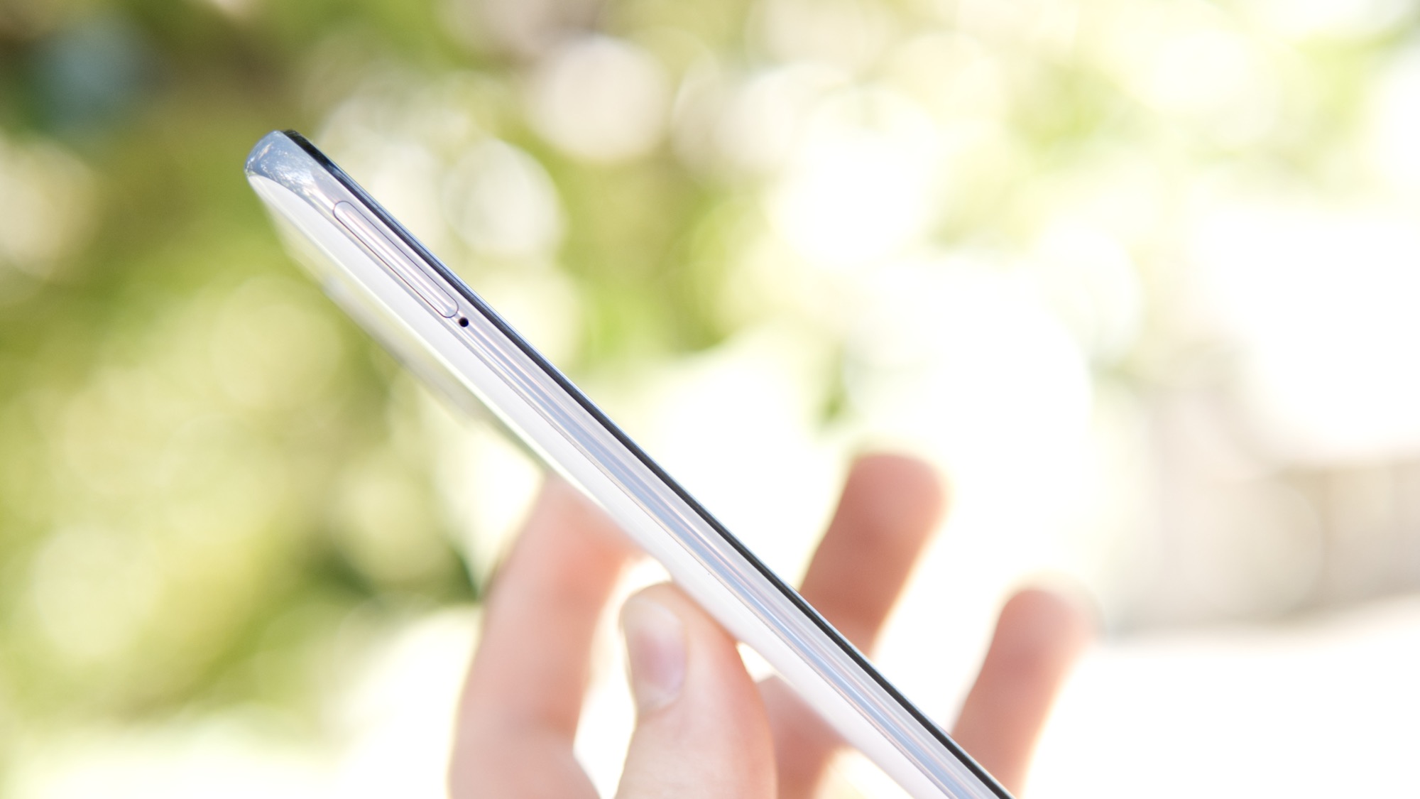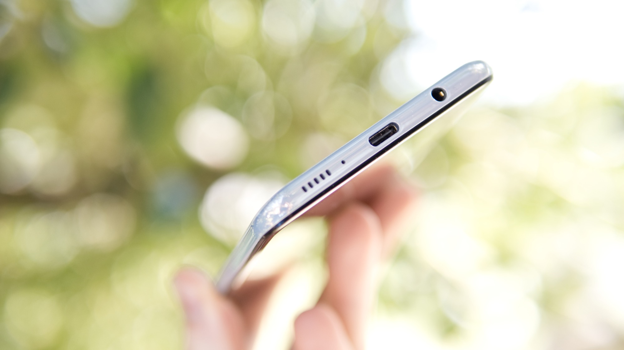 Sidorna av Galaxy A50 är också gjorda av plast. I denna prisklassen hade vi gärna sett metall. Det hade gjort att A50 skulle kunna erbjuda en lite högre kvalitetskänsla. Med det sagt är ändå sidorna väl konstruerade. A50 kan vara ett av de bästa exemplen på hur plast kan användas utan att göra hela konstruktionen ostadig. På höger sida finns i alla fall en på/av-knapp och två volymknappar med bra fysisk återkoppling. På ovansidan finns en sekundär mikrofon och på vänster sida finns en kortplats med utrymme för två nanoSIM-kort och ett microSD-kort, samtidigt. Längs undersidan finns slutligen en hörlursport, högtalare, mikrofon och en USB Typ-C-port som bara har stöd för USB 2.0.