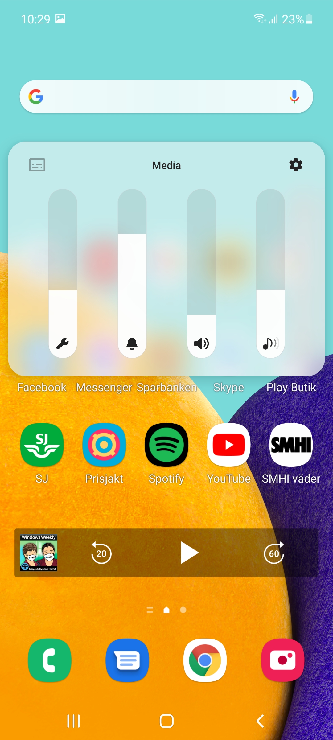 SmartThings bidrar för övrigt med kontroll över anslutna ljudenheter. När media spelas finns en notis som gör det enkelt att snabbt byta mellan anslutna enheter. Samsung har för övrigt också bytt design på systemets ljudreglage. Nu beter sig OneUI mer likt Android. Som standard justerar volymknapparna bara media-volym och kontroll över andra volymer är tillgängligt med ett extra tryck. I klassisk Samsung-stil finns det en inställning för att återställa volymknapparnas beteende till hur de fungerade förr.